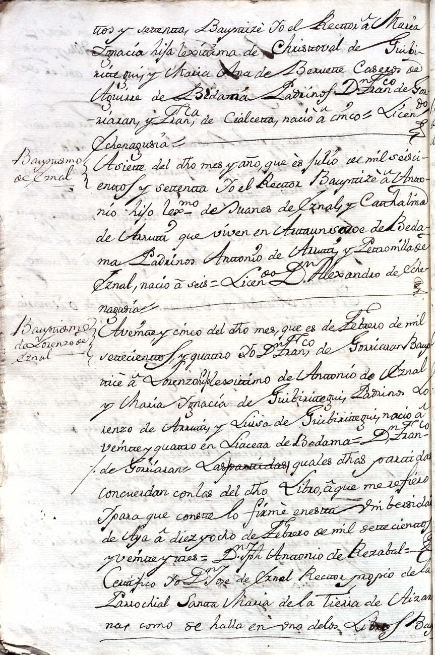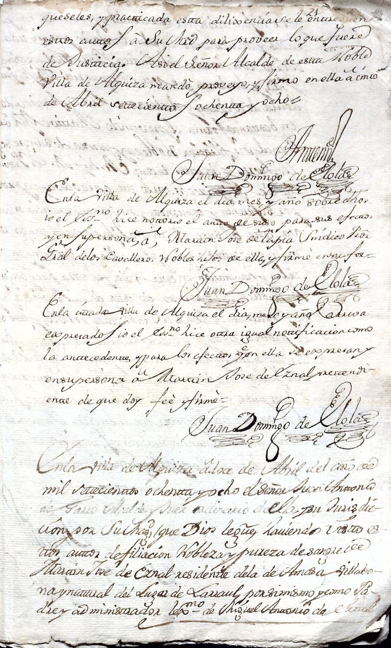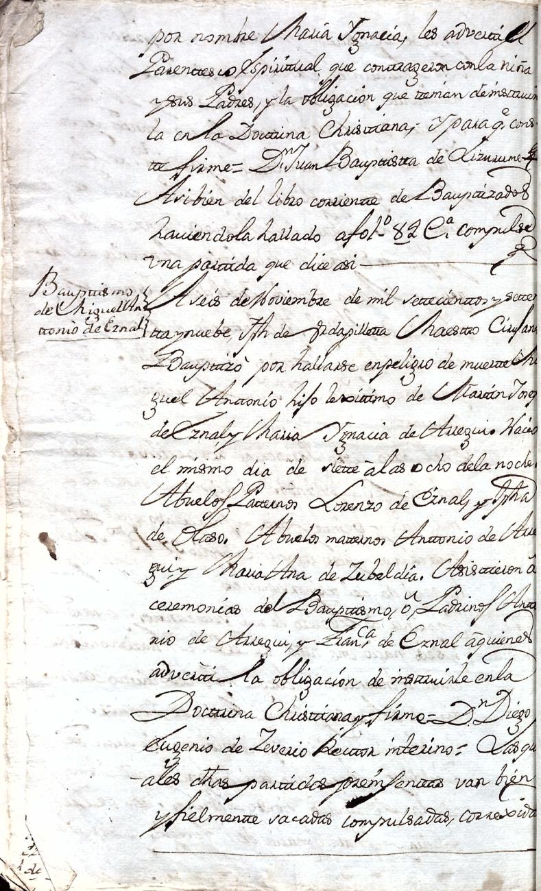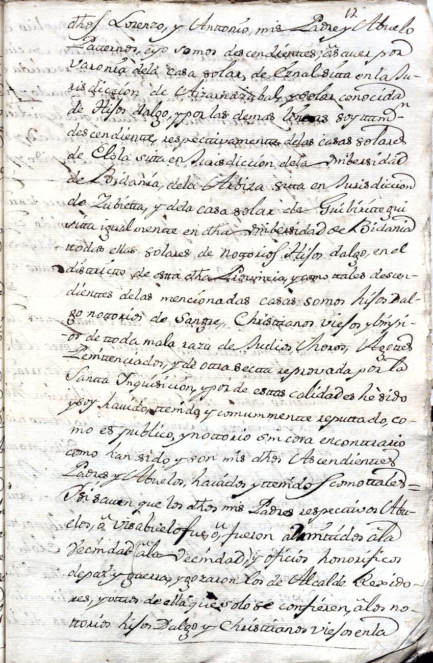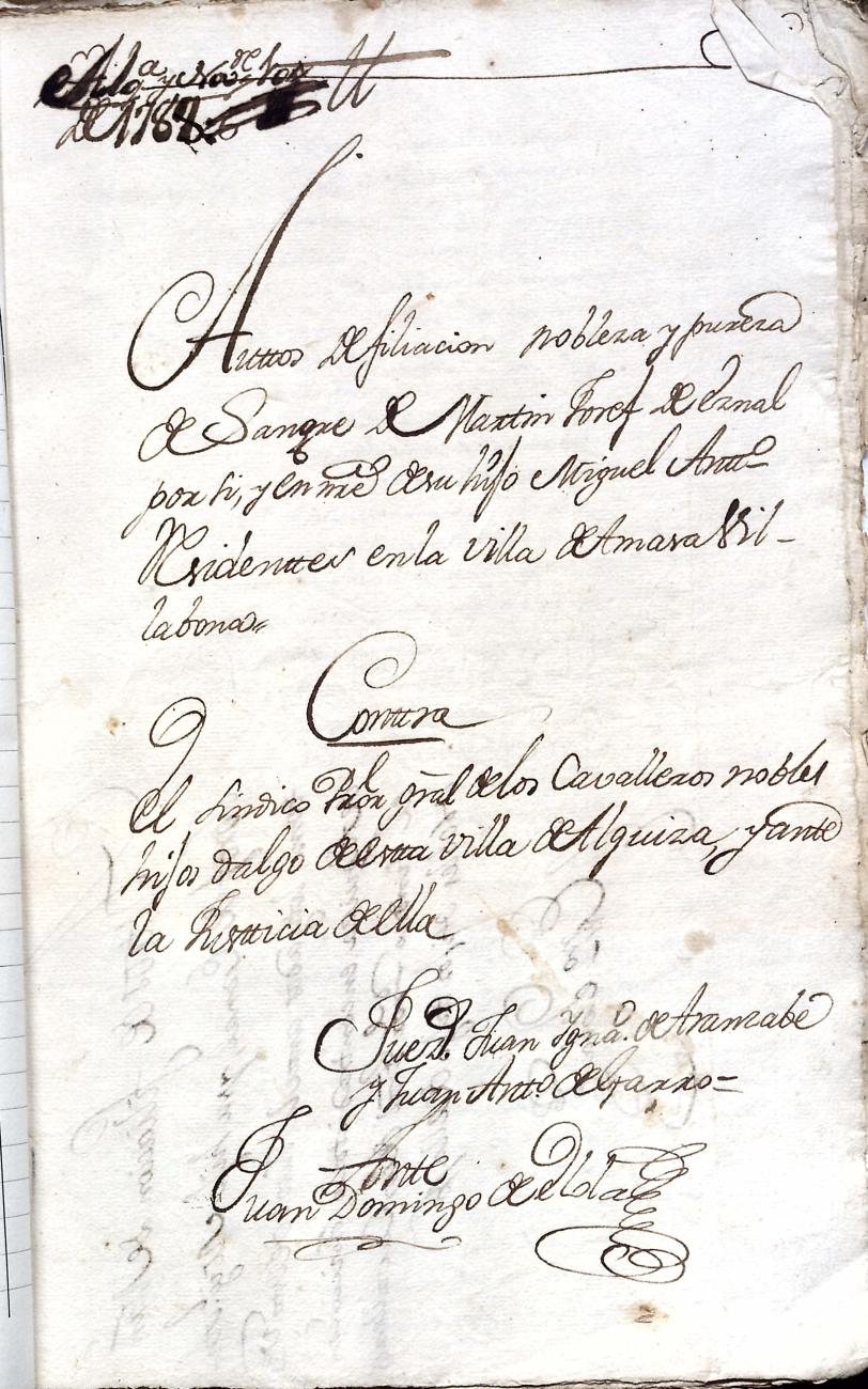 Hidalguias. Filiación de Martín José de Eznal y Elola, descendiente de la casa solar de Eznal de Aizarna.