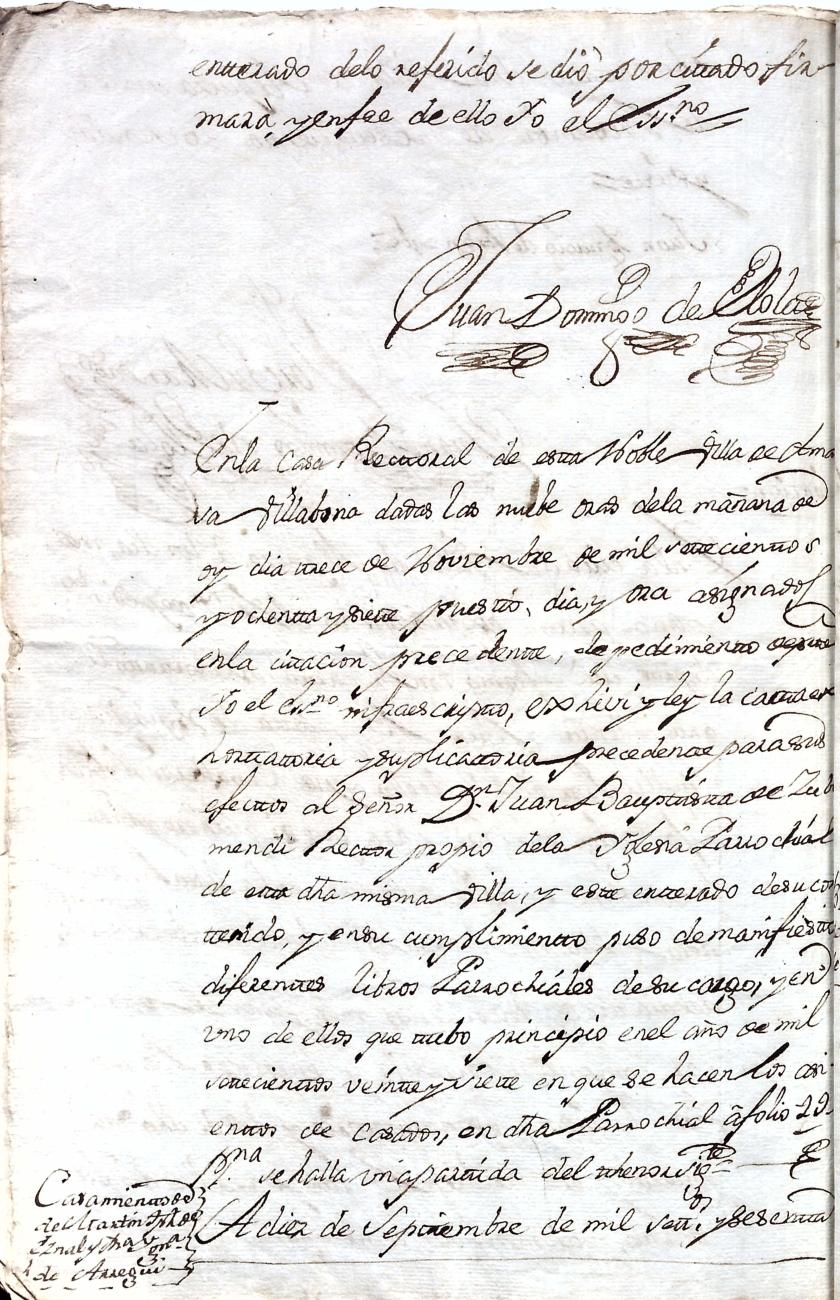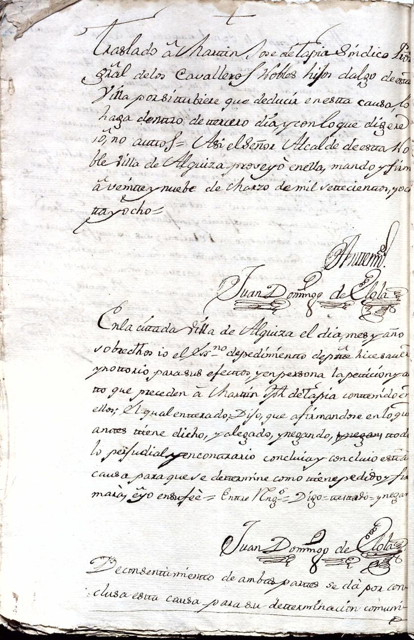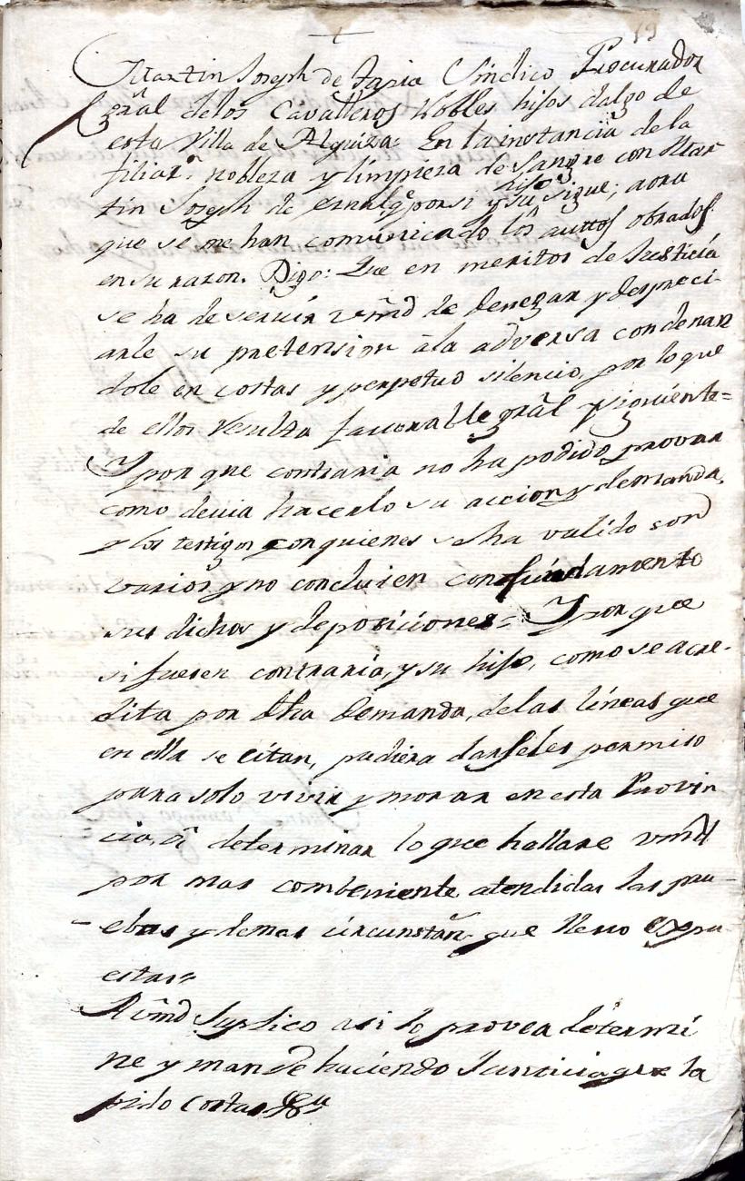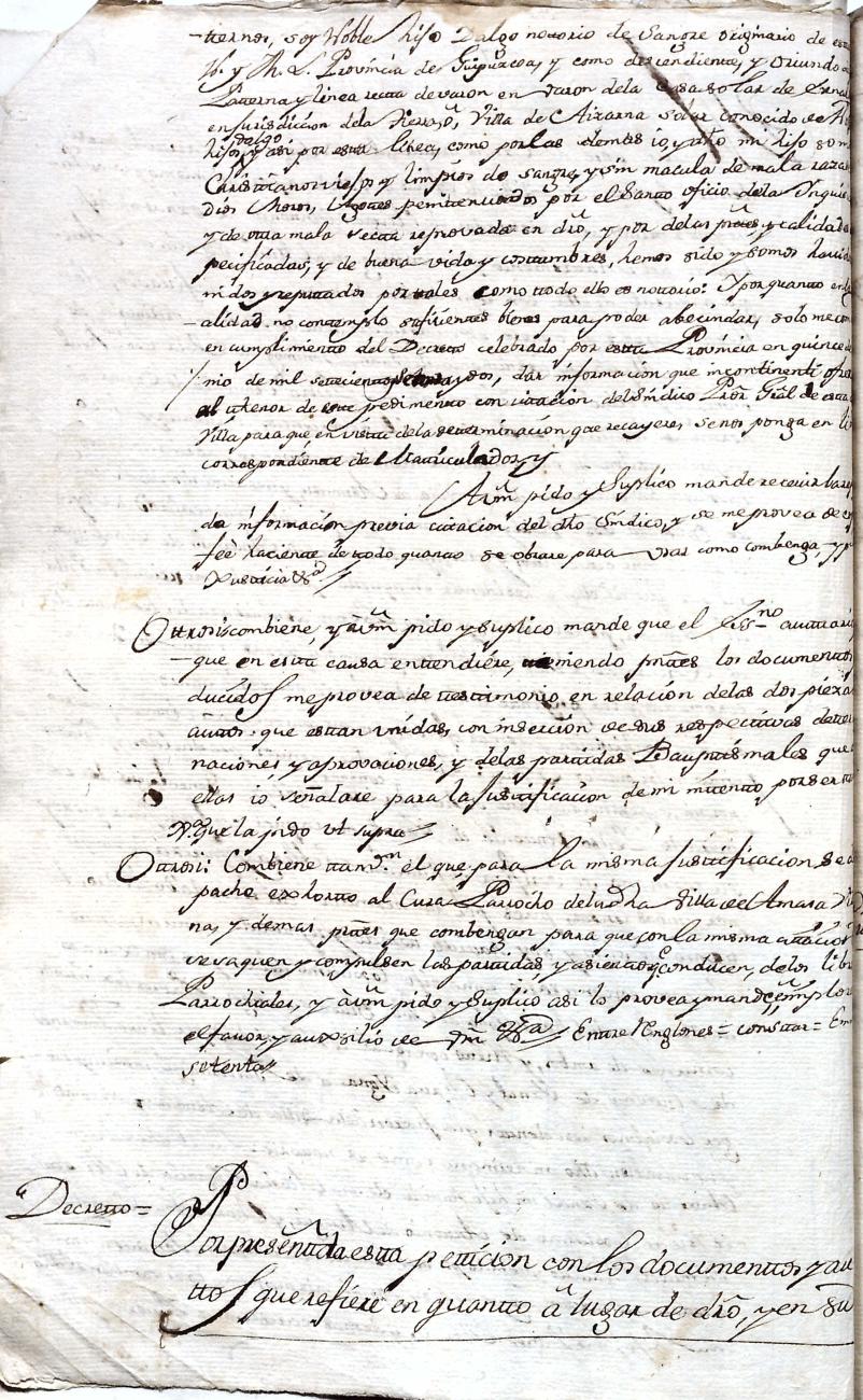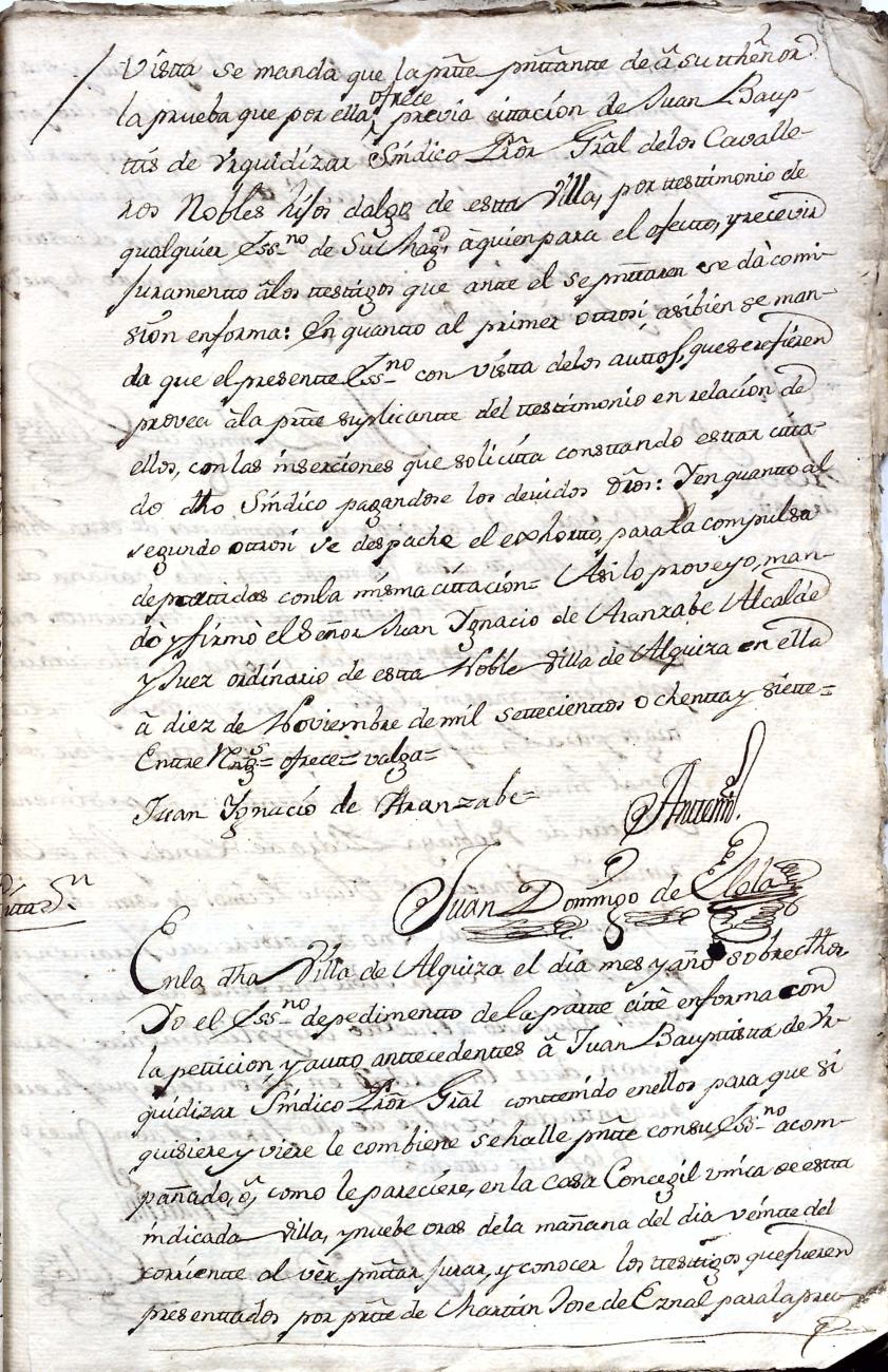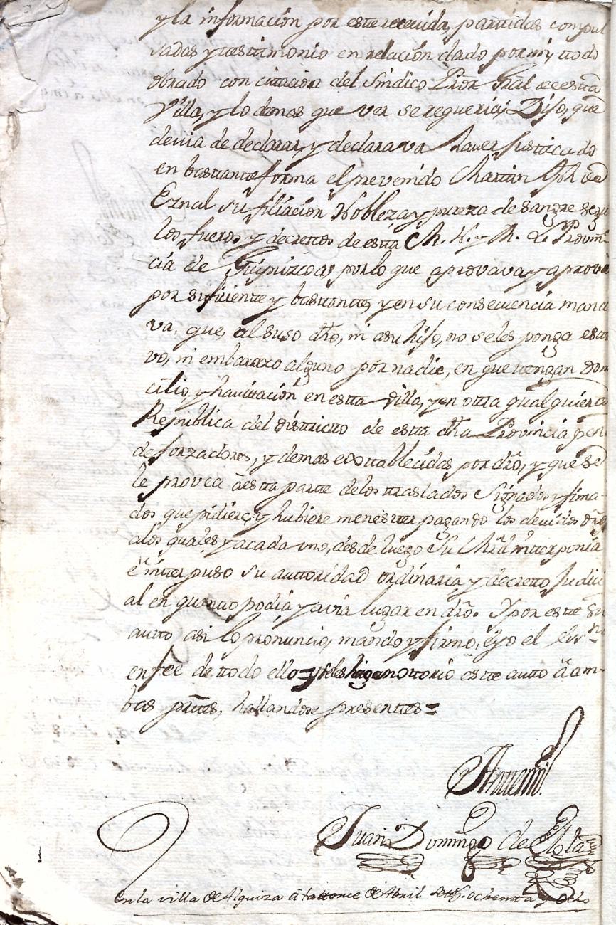 Hidalguias. Filiación de Martín José de Eznal y Elola, descendiente de la casa solar de Eznal de Aizarna.