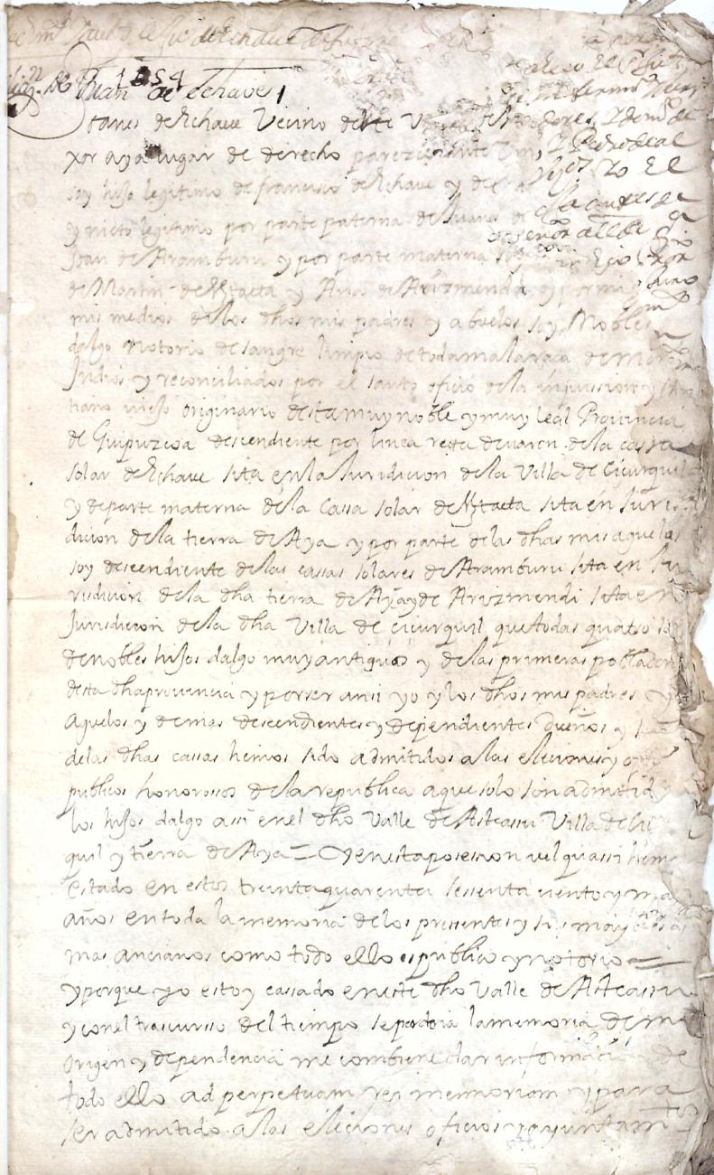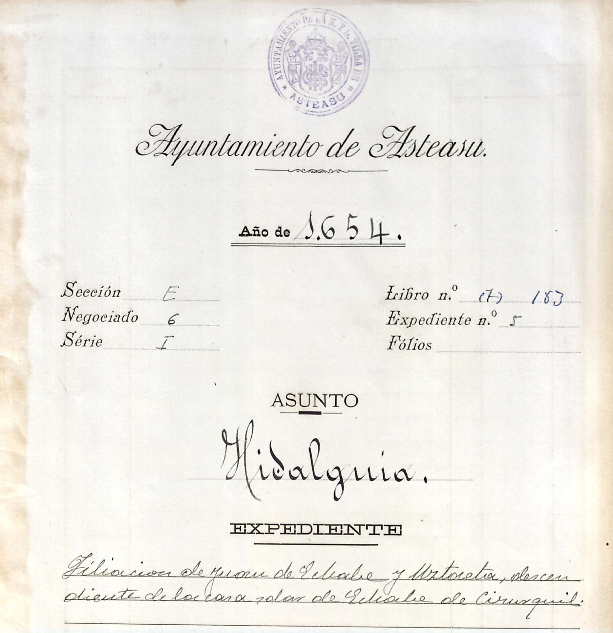 Hidalguias. Filiación de Juan de Echabe y Uztaeta, descendiente de la casa solar de Echabe de Cizurquil.