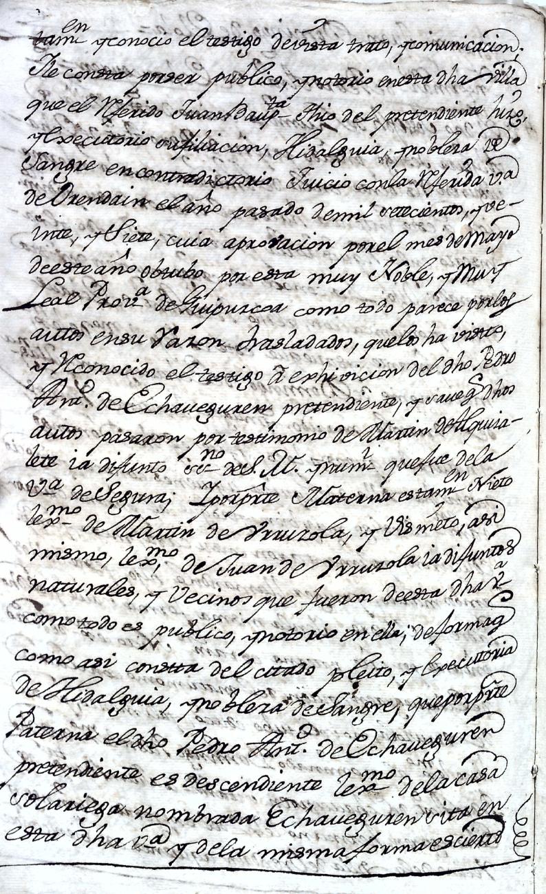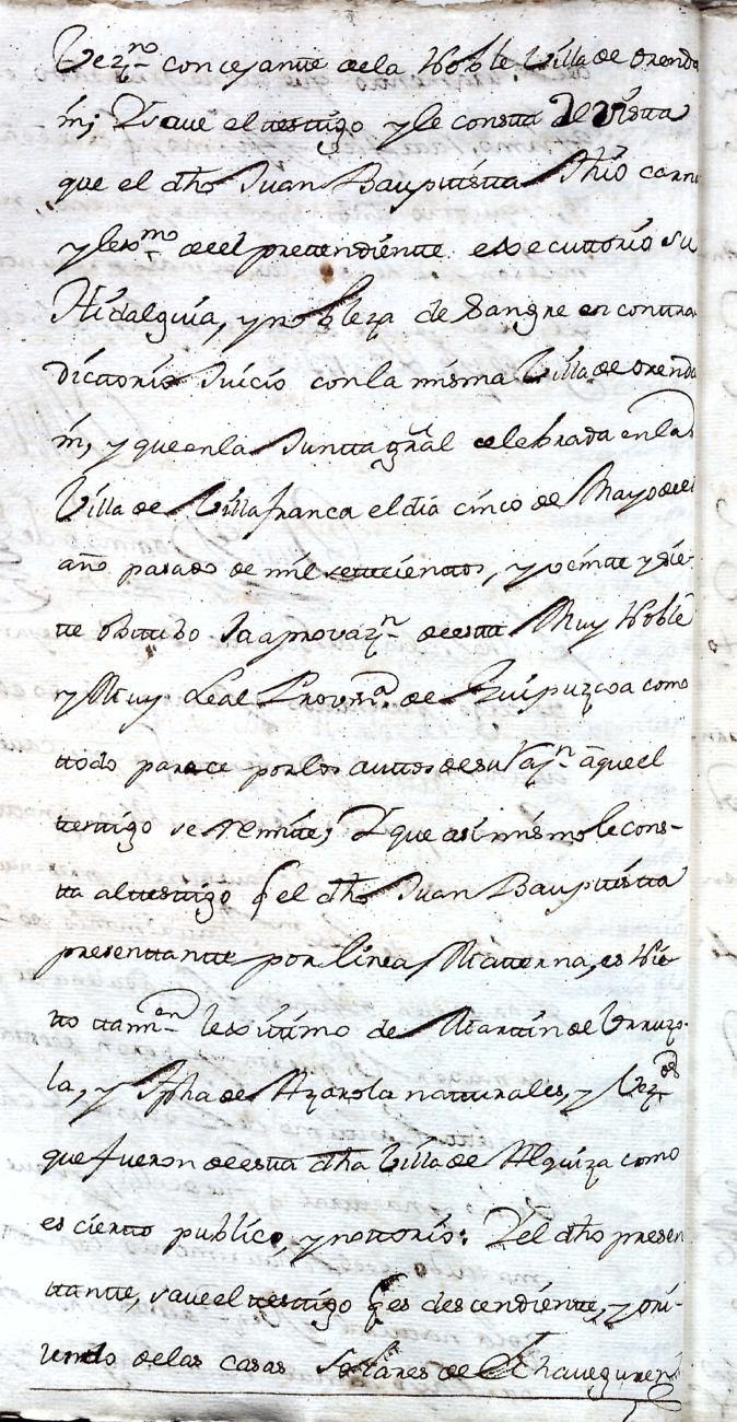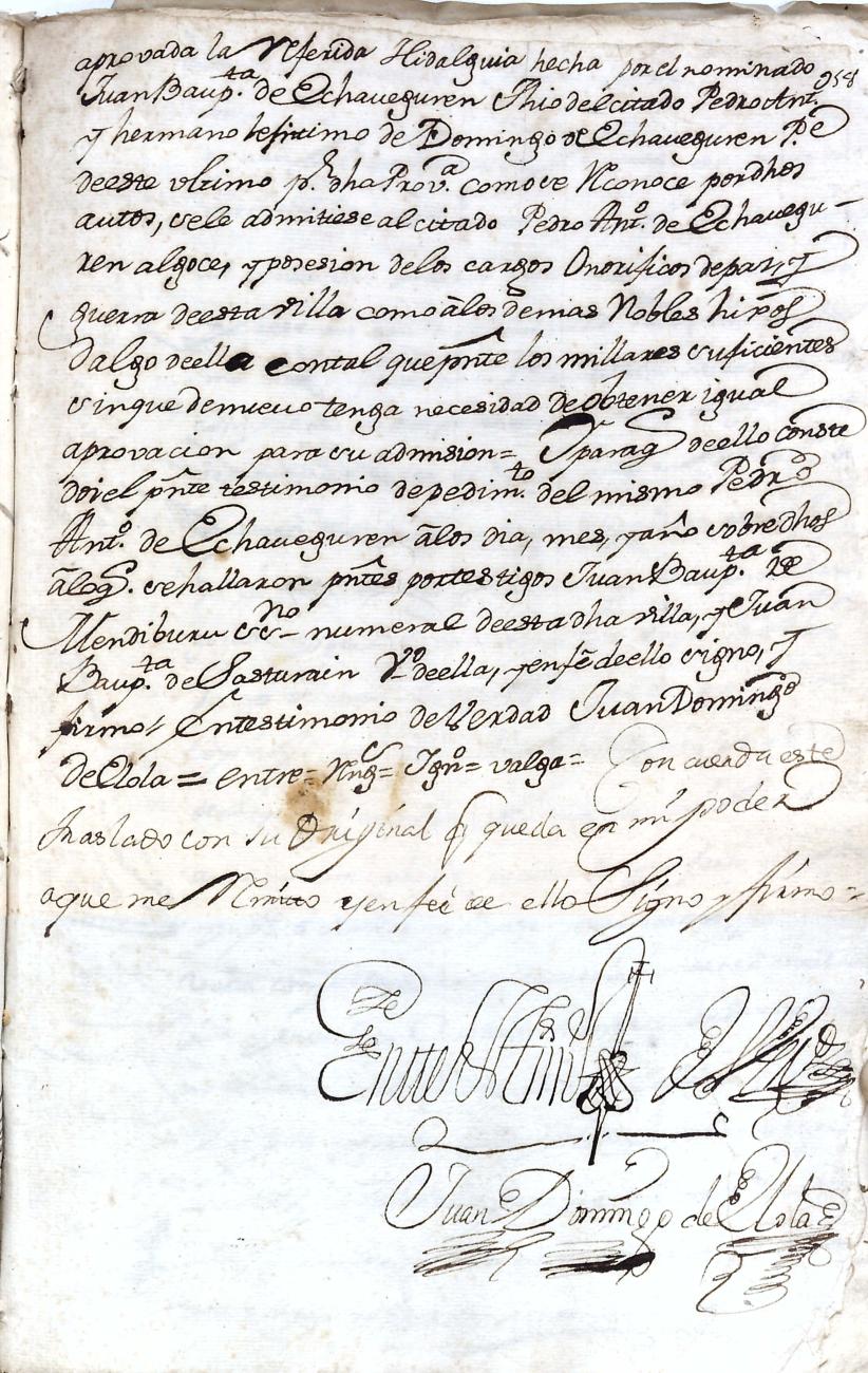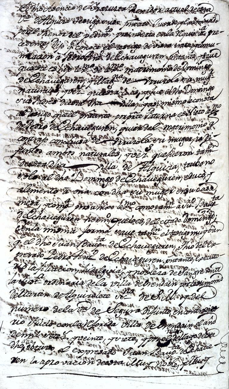 Hidalguias. Filiación de Juan Bautista de Echabeguren y Urruzola, descendiente de la casa solar de Echabeguren de Alquiza.
