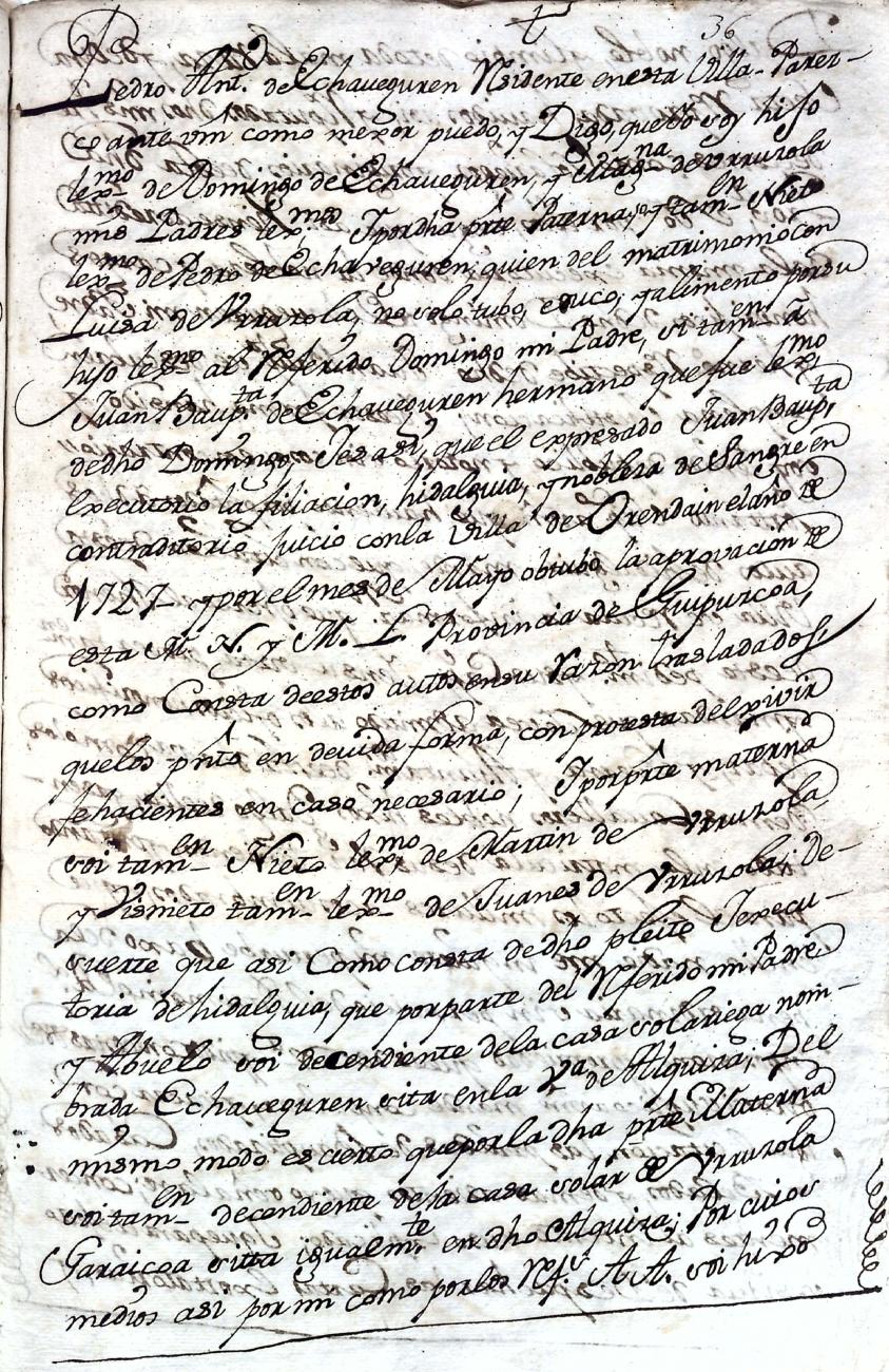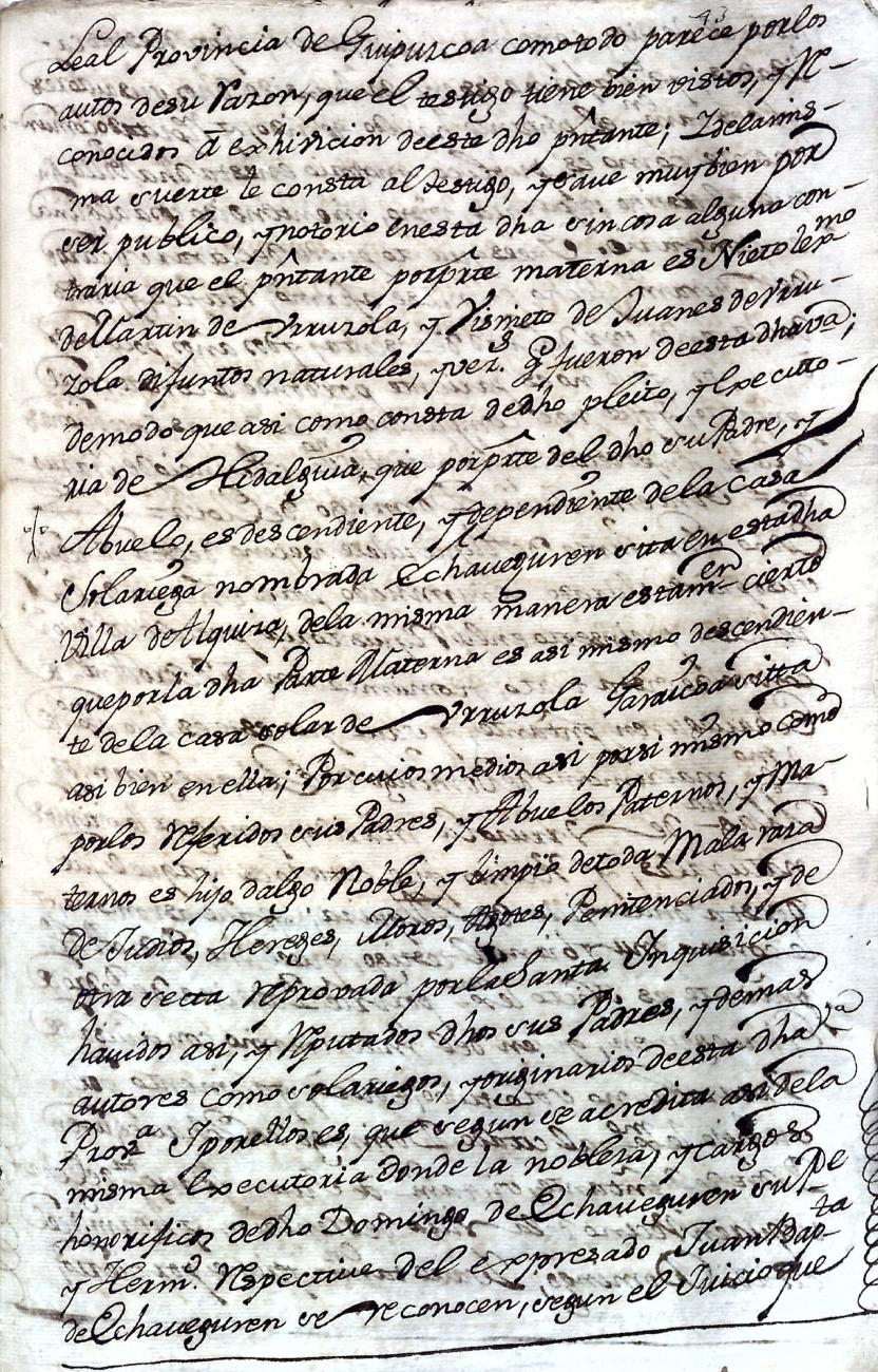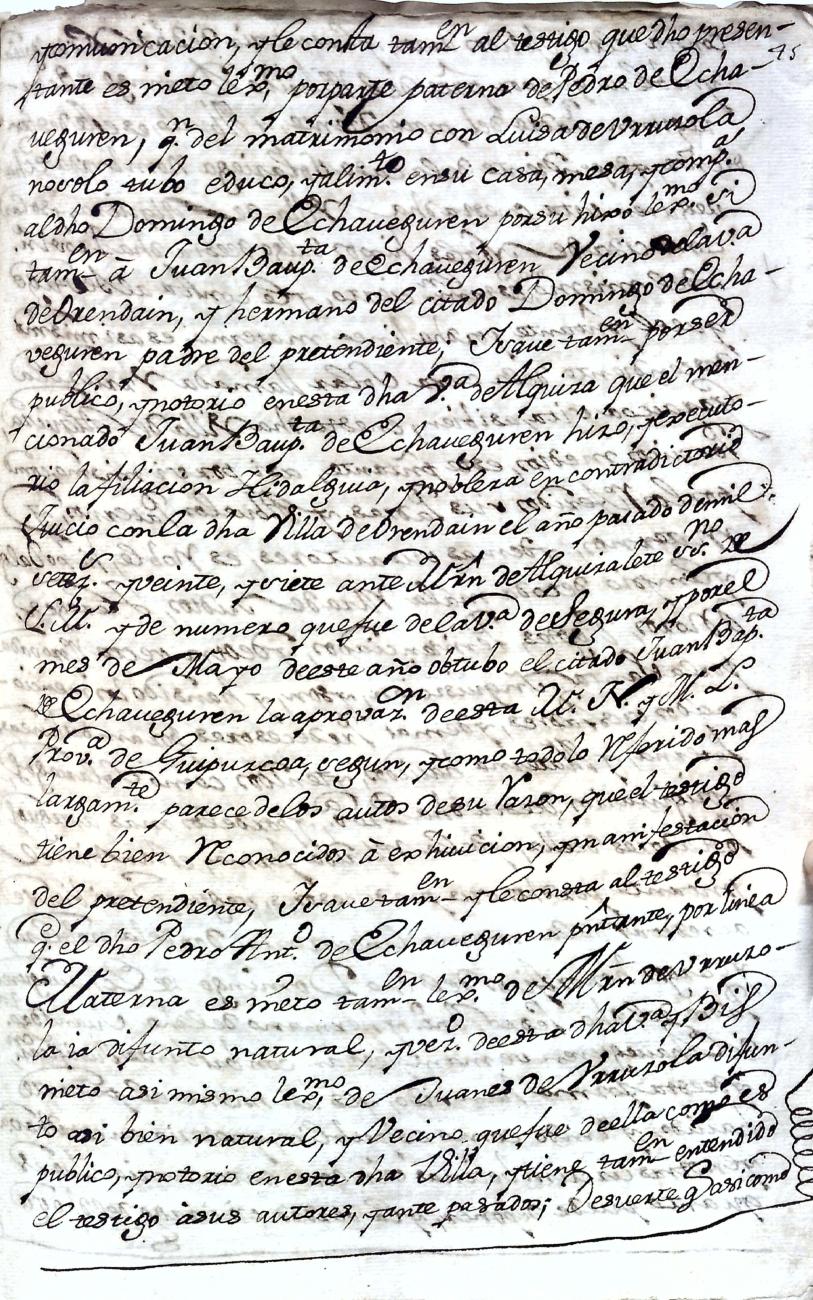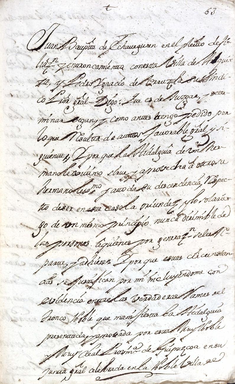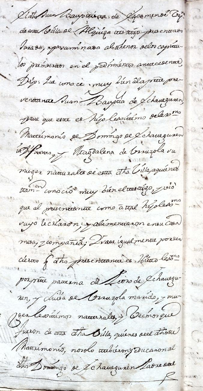 Hidalguias. Filiación de Juan Bautista de Echabeguren y Urruzola, descendiente de la casa solar de Echabeguren de Alquiza.