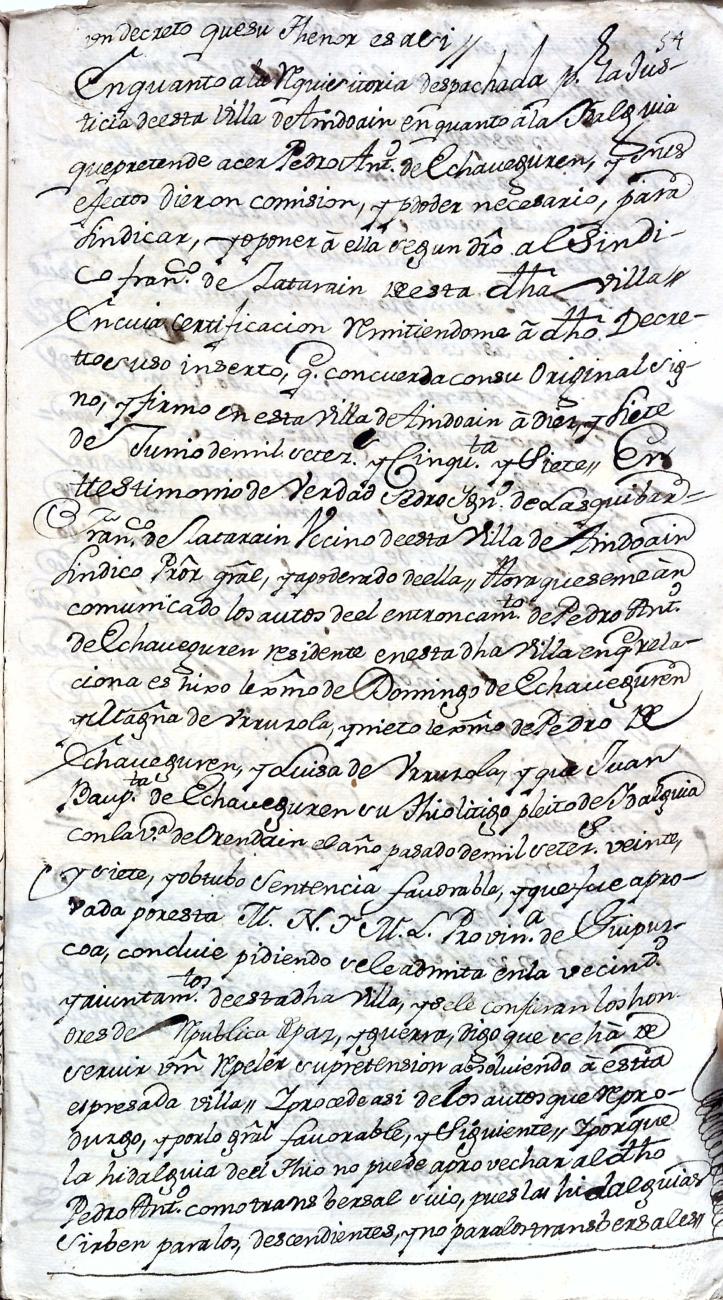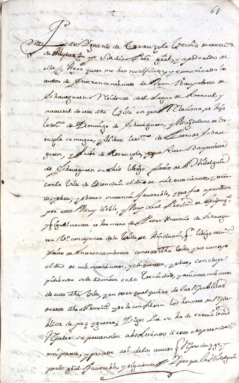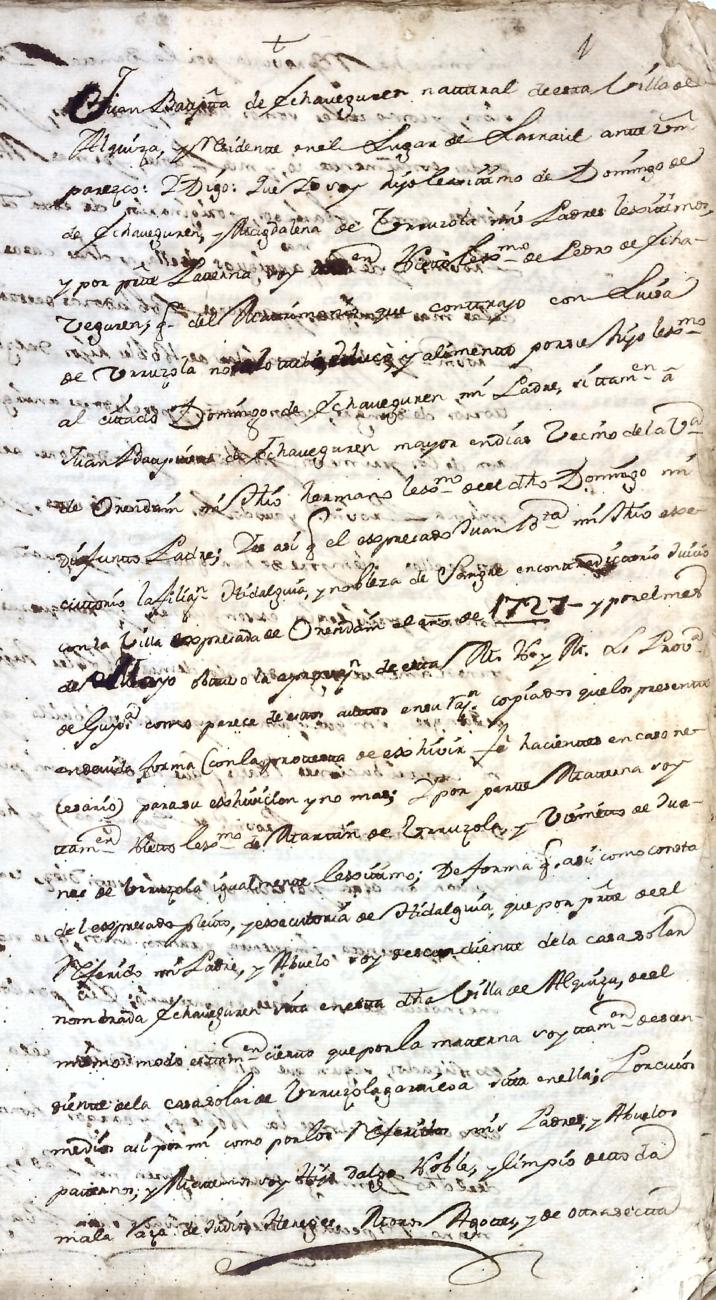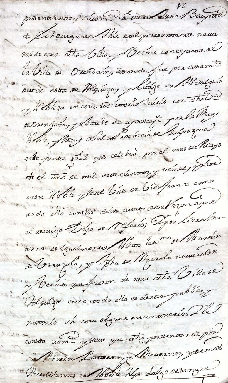 Hidalguias. Filiación de Juan Bautista de Echabeguren y Urruzola, descendiente de la casa solar de Echabeguren de Alquiza.