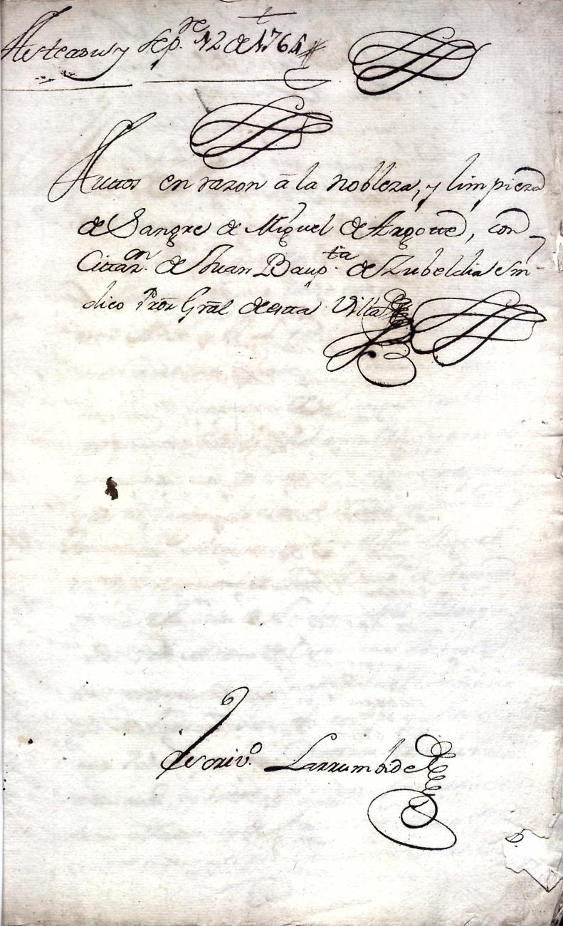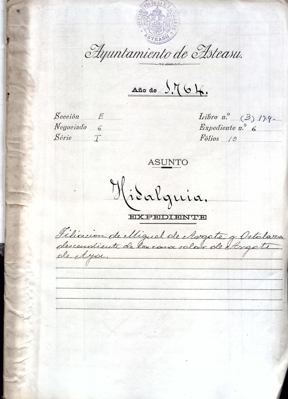 Hidalguias. Filiación de Miguel de Argote y Ostolaza, descendiente de la casa solar de Argote de Aya.