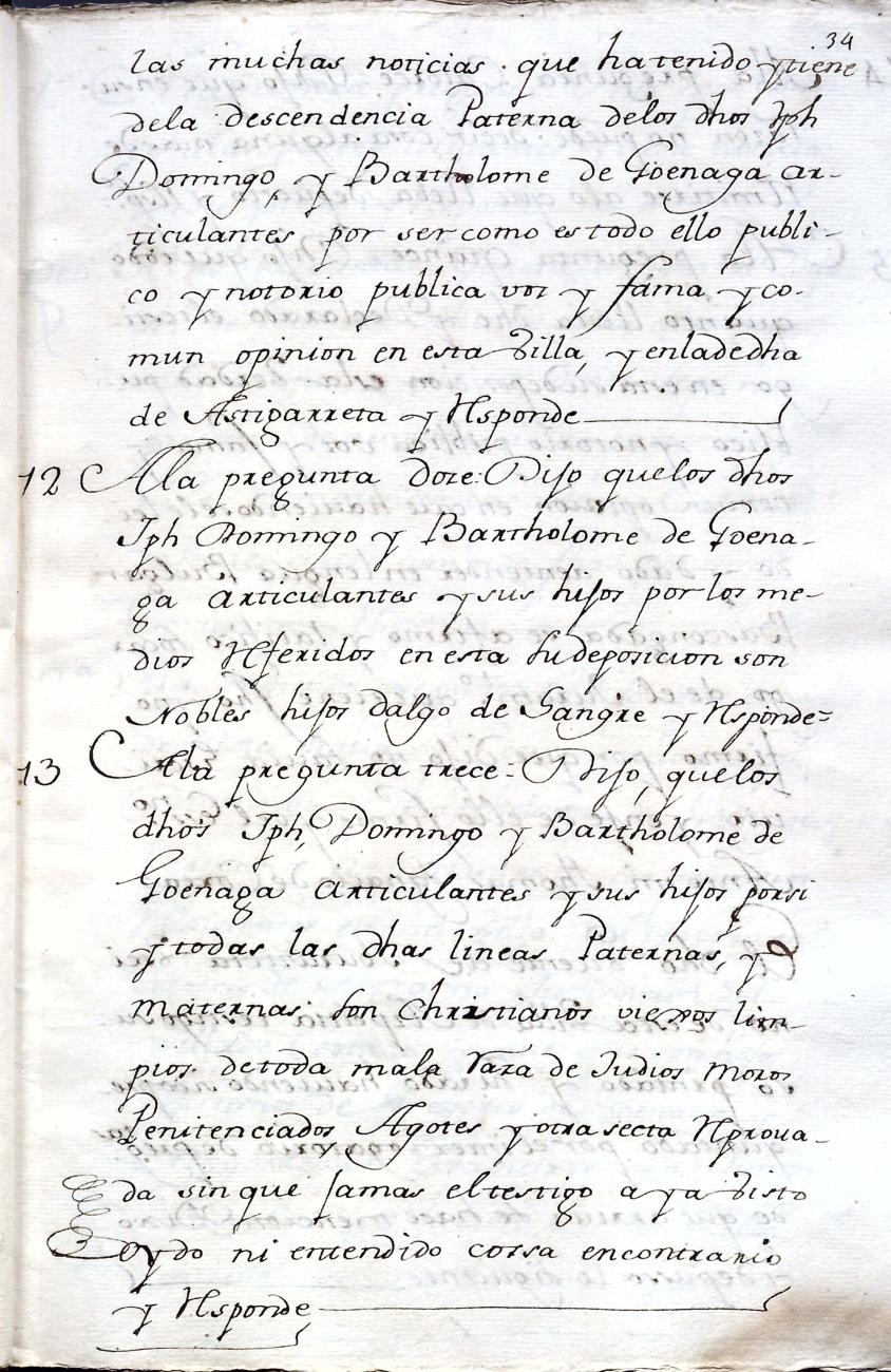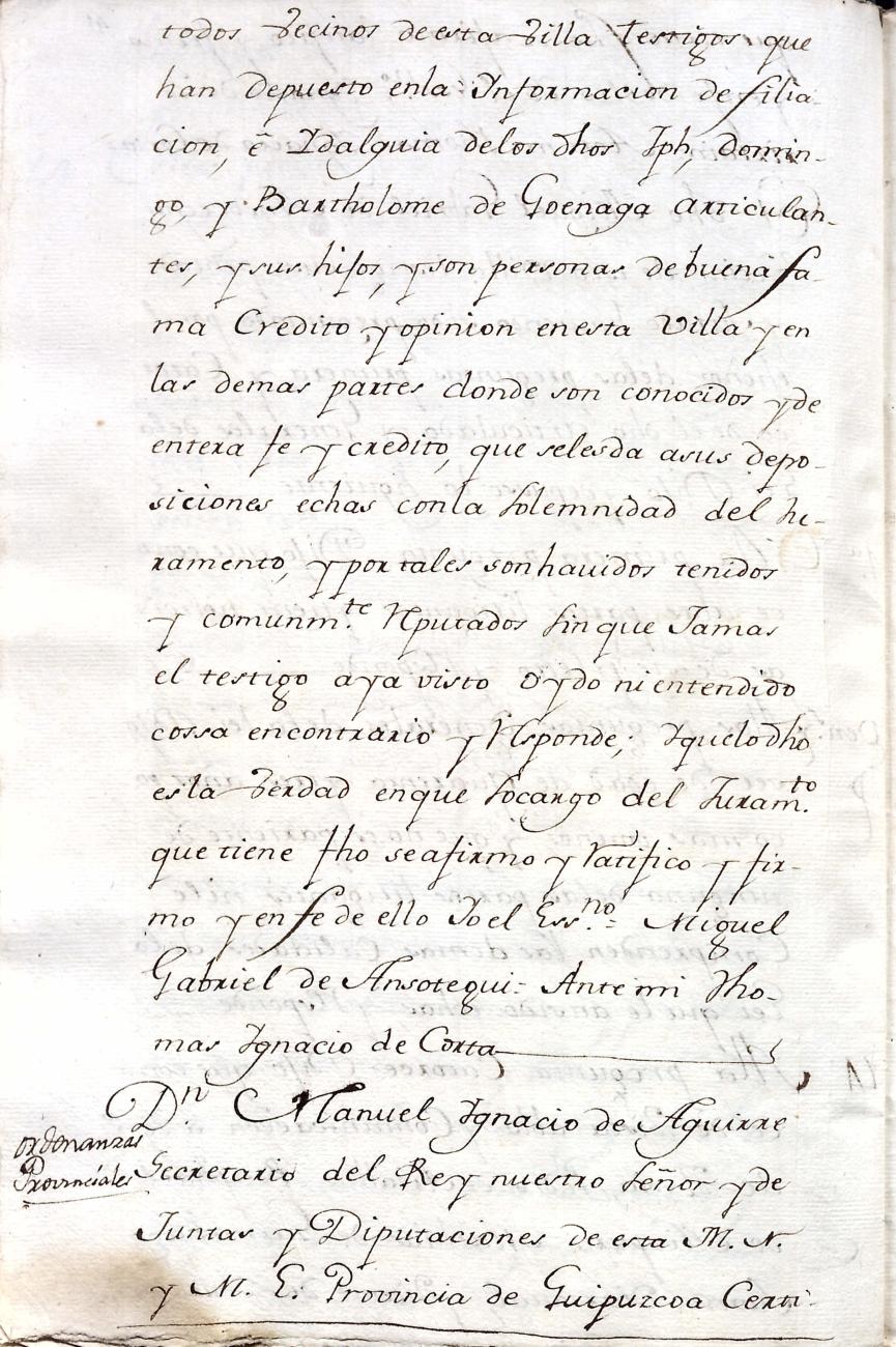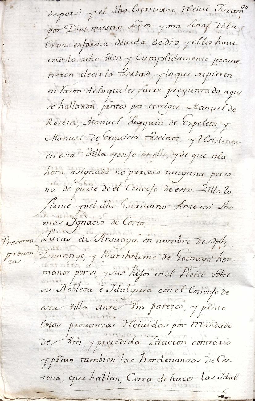 Hidalguias. Hidalguía de José de Goenaga y Eizaguirre, descendiente de la casa solar de Eizaguirre de Astigarreta.