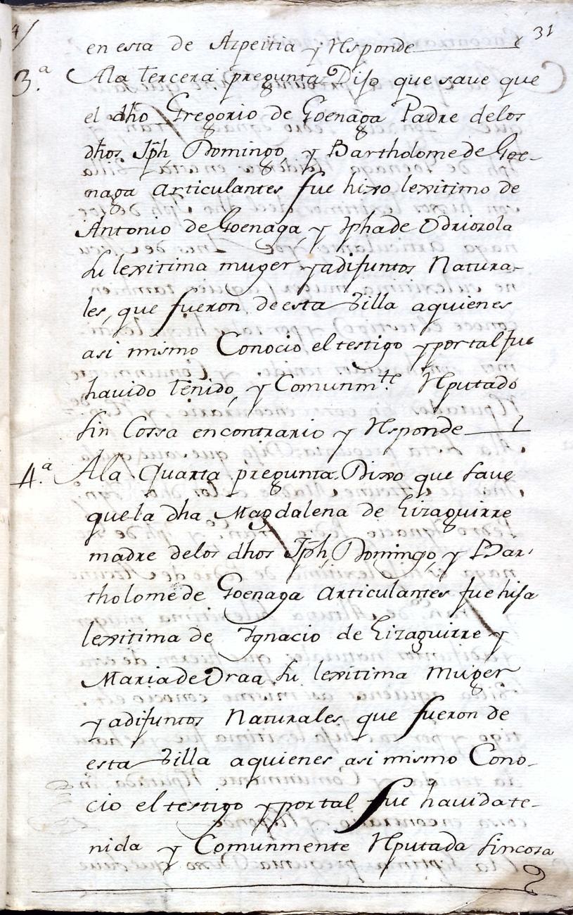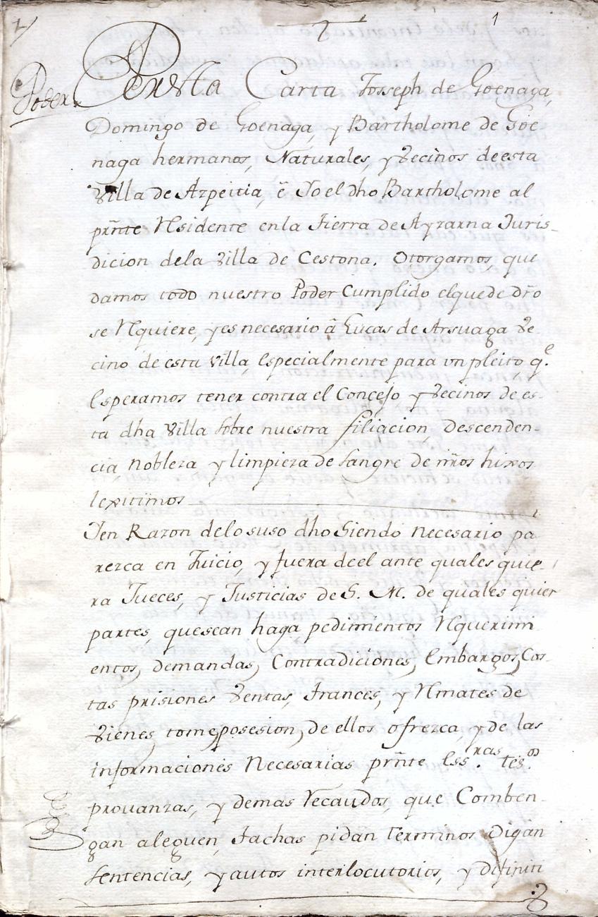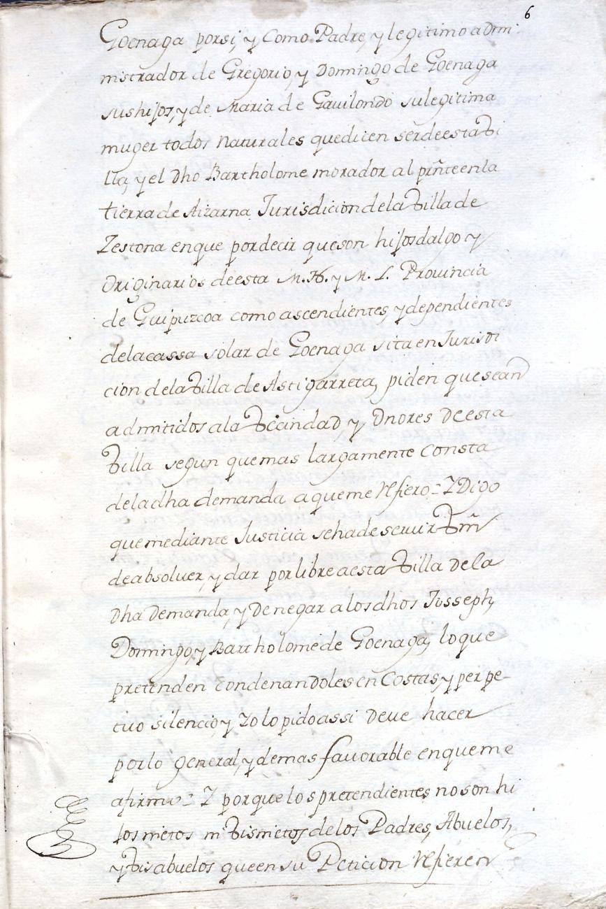 Hidalguias. Hidalguía de José de Goenaga y Eizaguirre, descendiente de la casa solar de Eizaguirre de Astigarreta.