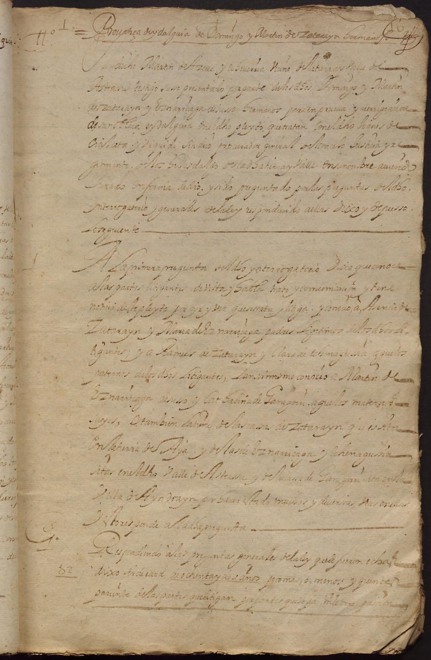 Hidalguias. Hidalguía de Domingo y Martín de Zatarain y Eznarrizaga, descendientes de la casa solar de Zatarain de Aya