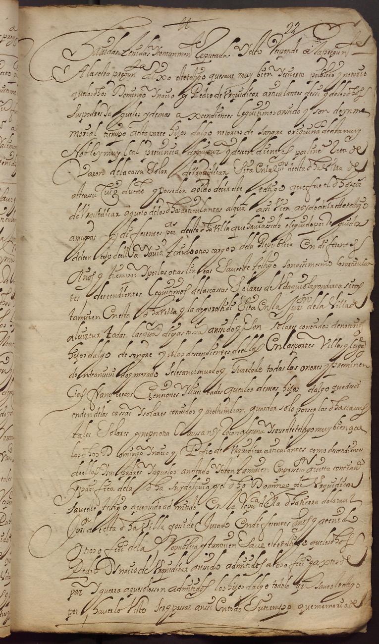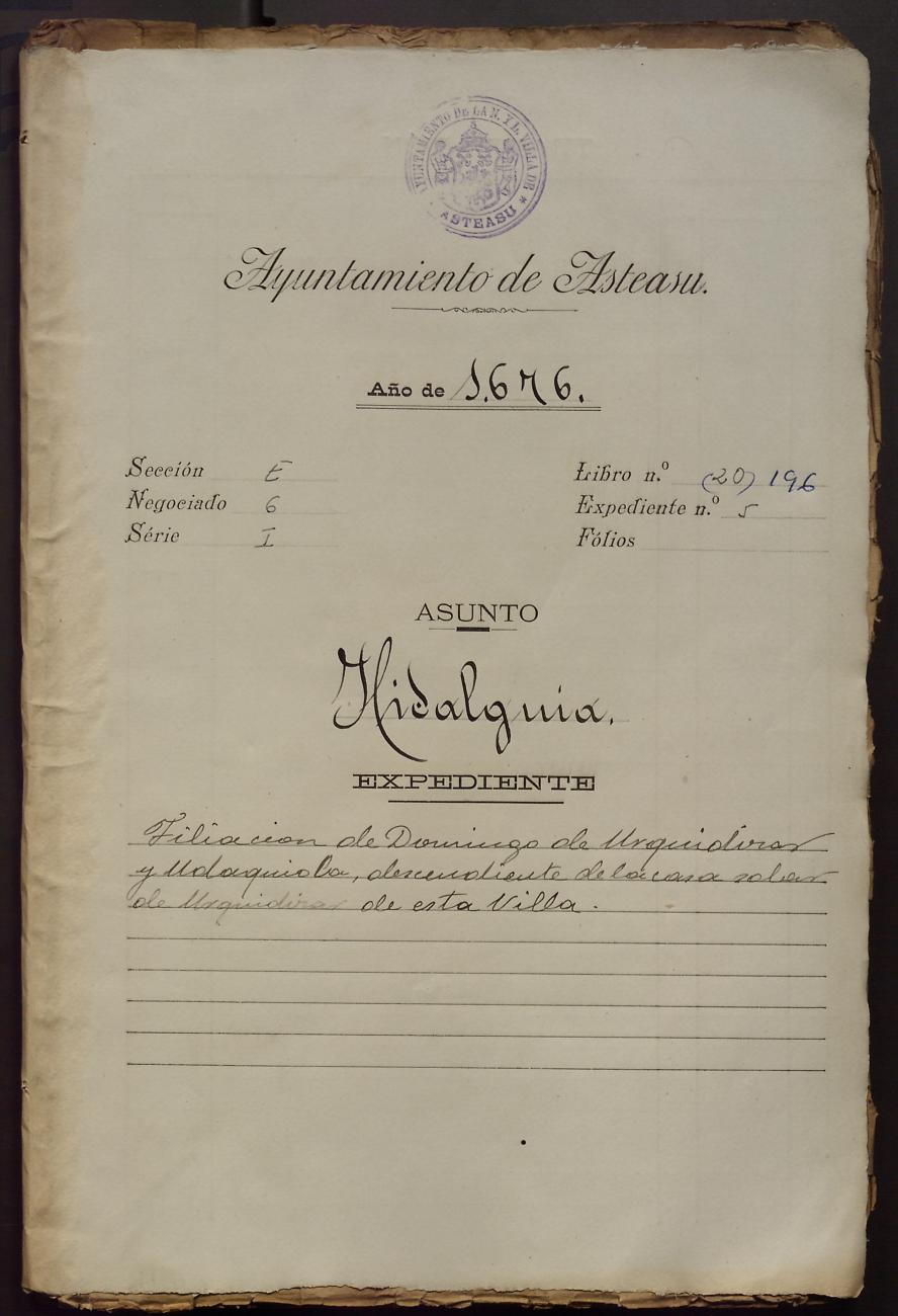 Hidalguias. Hidalguía de Domingo de Urquidizar y Udaquiola, descendiente de la casa solar de Urquidizar de esta Villa.
