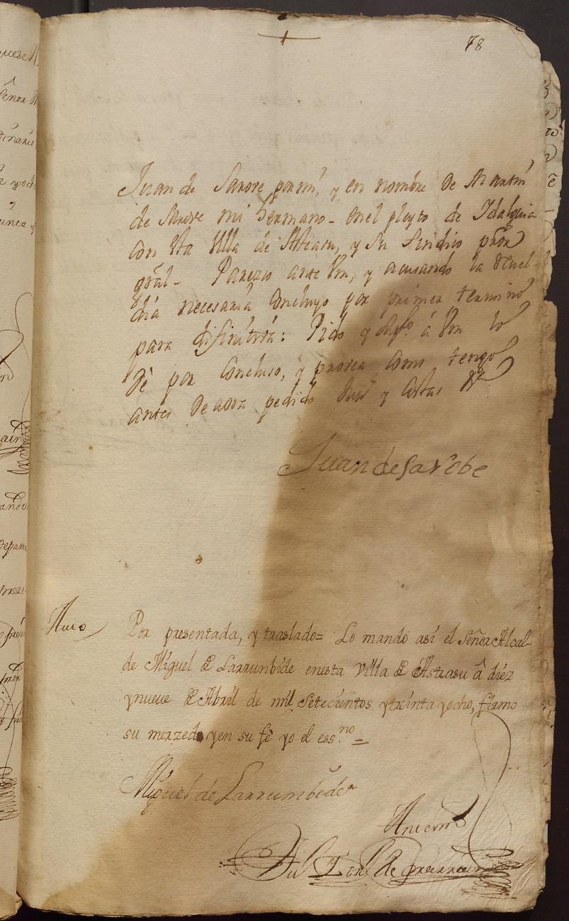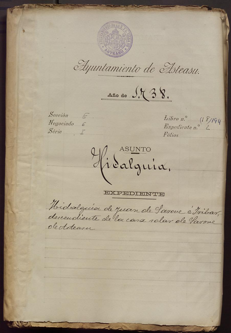 Hidalguias. Hidalguía de Juan de Sarobe e Iribar, descendiente de la casa solar de Sarobe de Asteasu