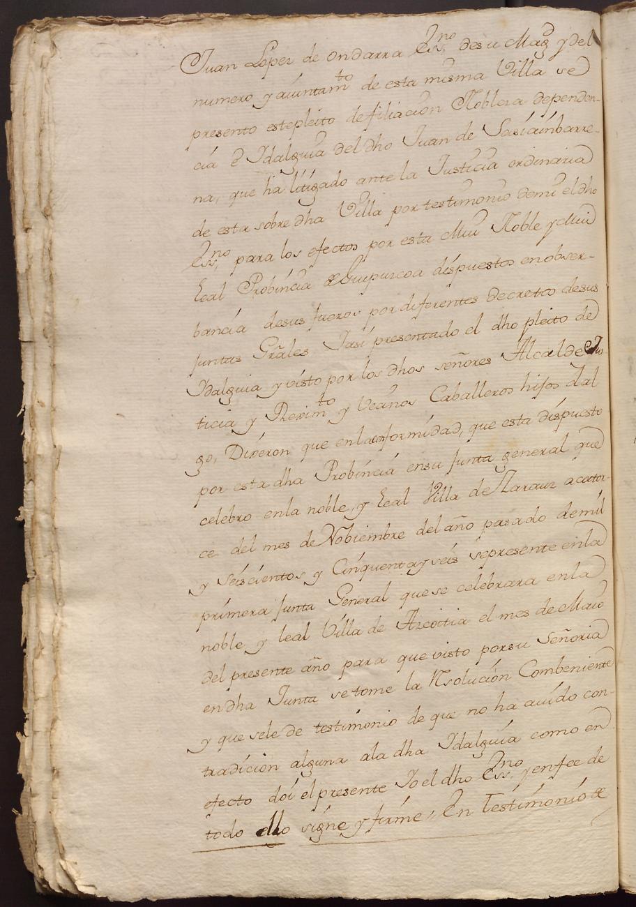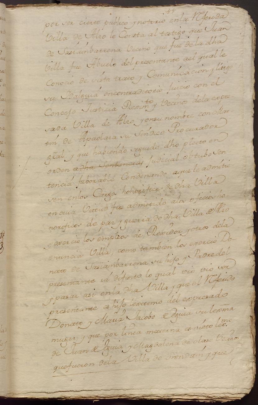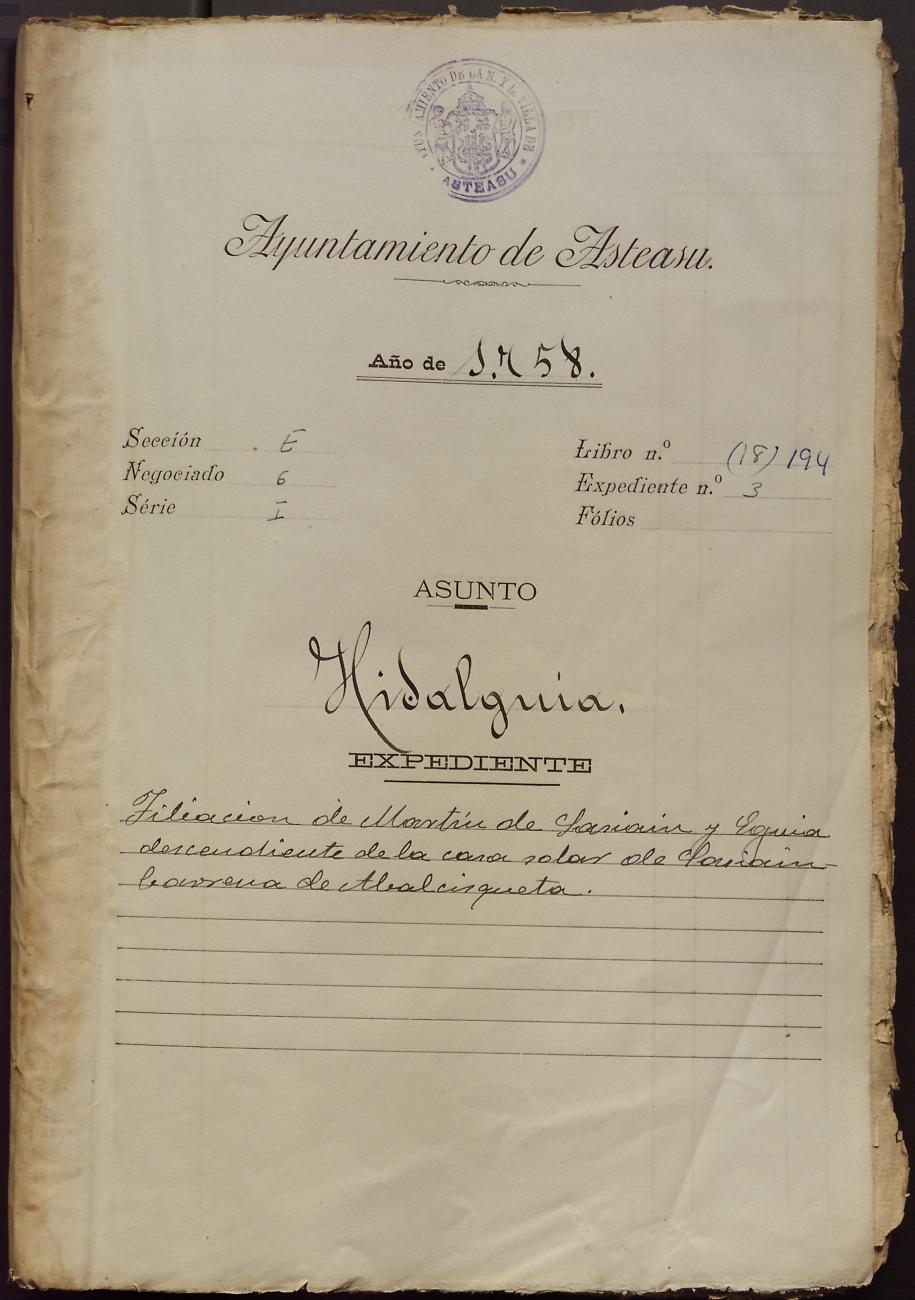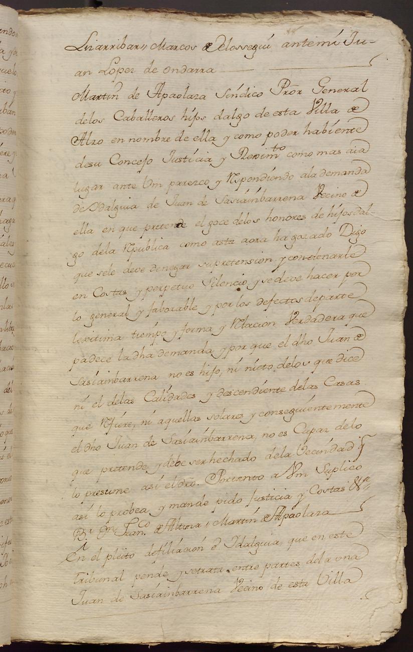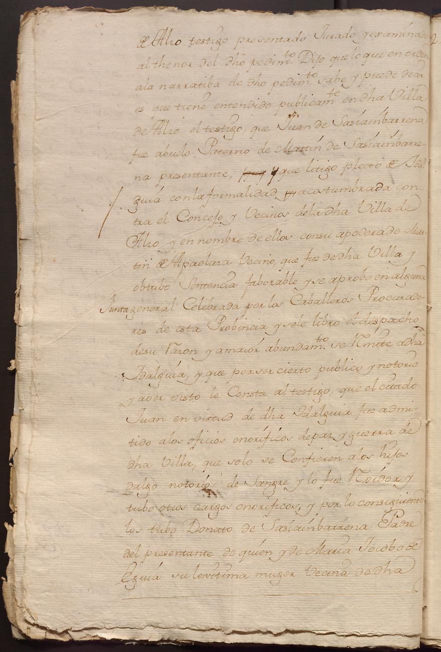 Hidalguias. Hidalguía de Martín de Sasiain y Eguia, descendiente de la casa solar de Sasiain-Barrena de Abaltzisketa.