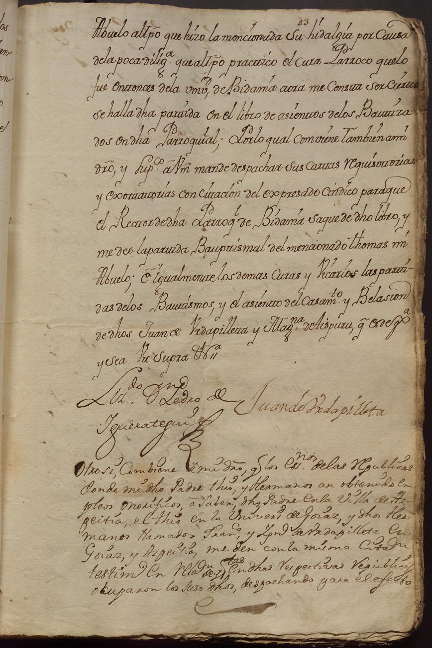 Hidalguias. Hidalguía de Bartolomé y Tomás de Urdapilleta, descendientes de la casa solar de Urdapilleta de Beizama.