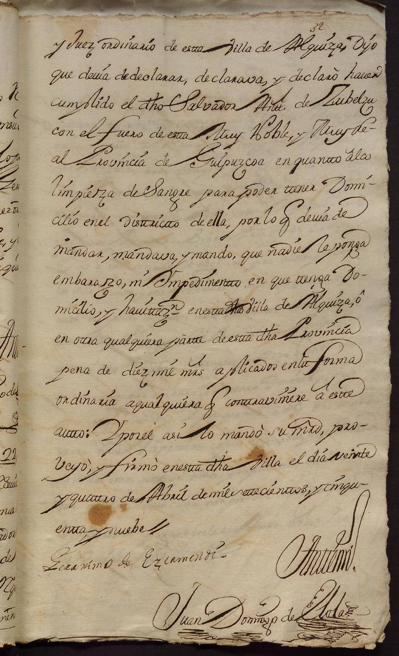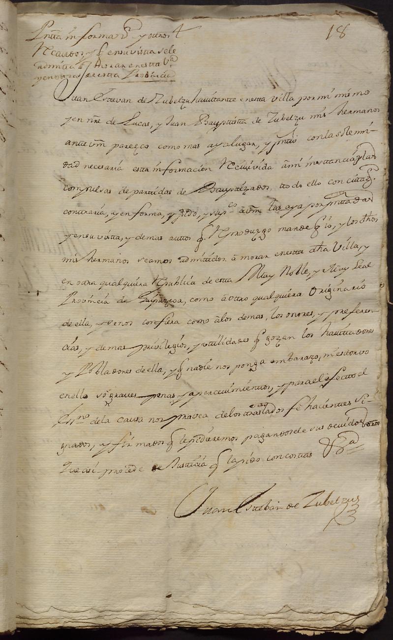 Hidalguias. Hidalguía de Juan Esteban de Zubelzu y Arana, descendiente de la casa solar de Zubelzu de Orendain.