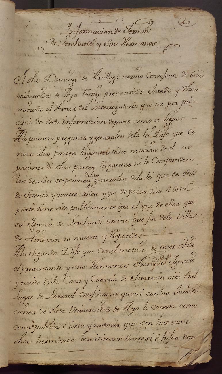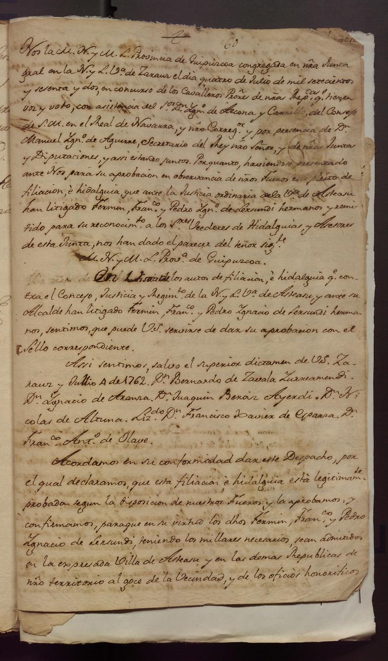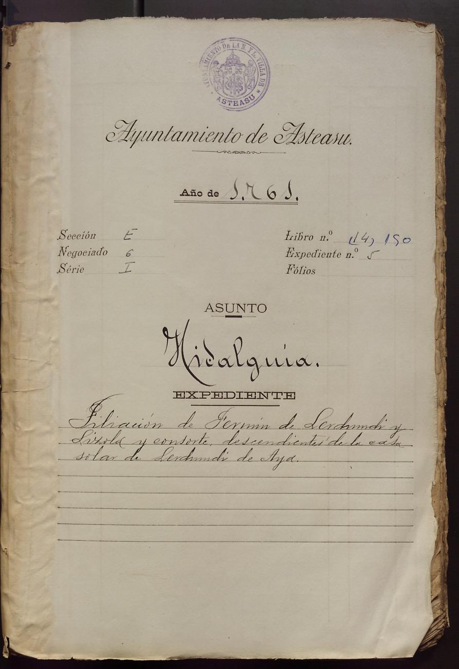 Hidalguias. Hidalguía de Fermín, Francisco e Ignacio de Lerchundi y Lizola, descendientes de la casa solar de Lerchundi de Aya.