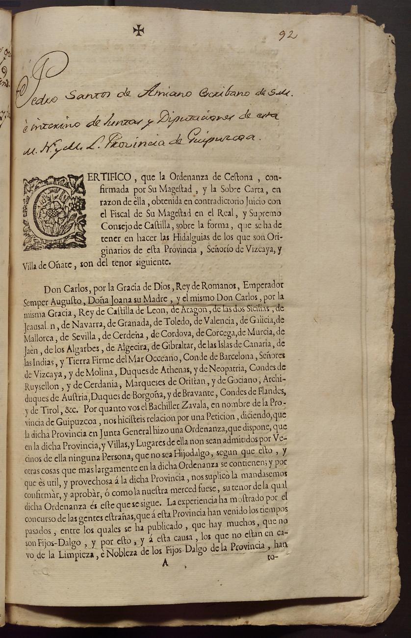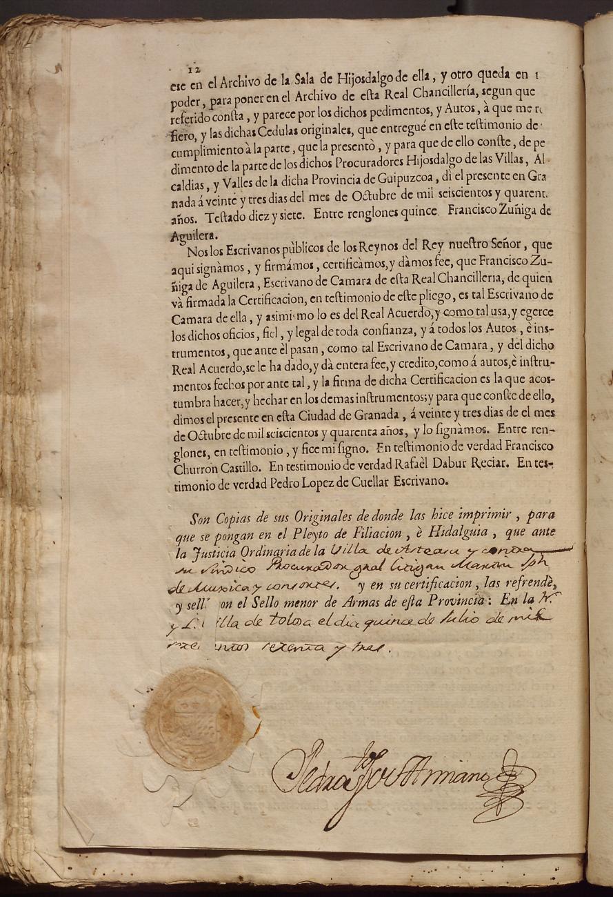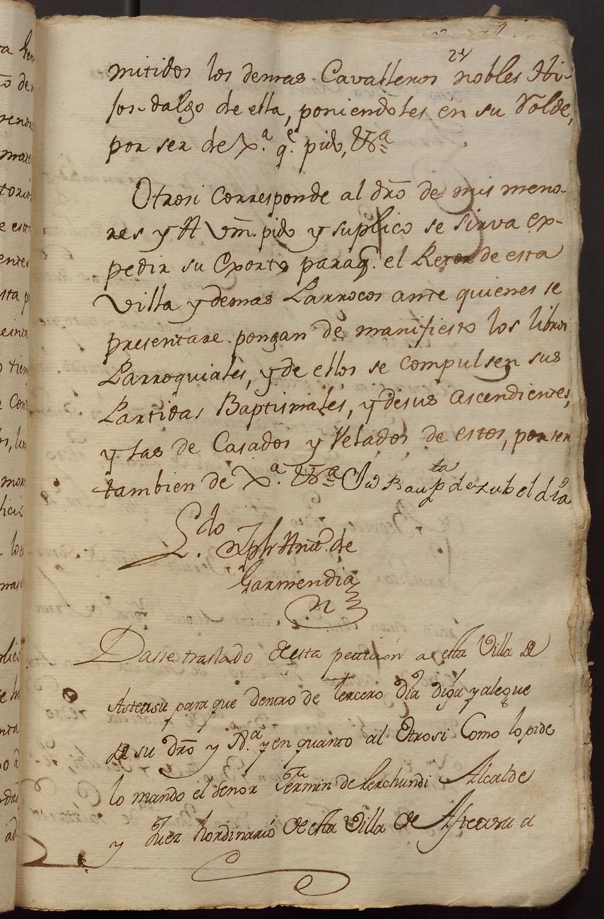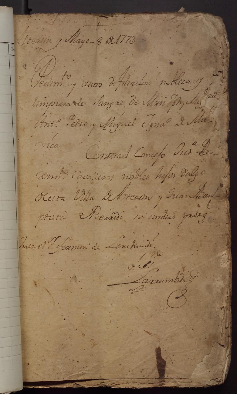 Hidalguias. Hidalguía de Martín José de Múxica y Galarmendi y consortes, descendientes de la casa solar de Múxica de Arriarán.