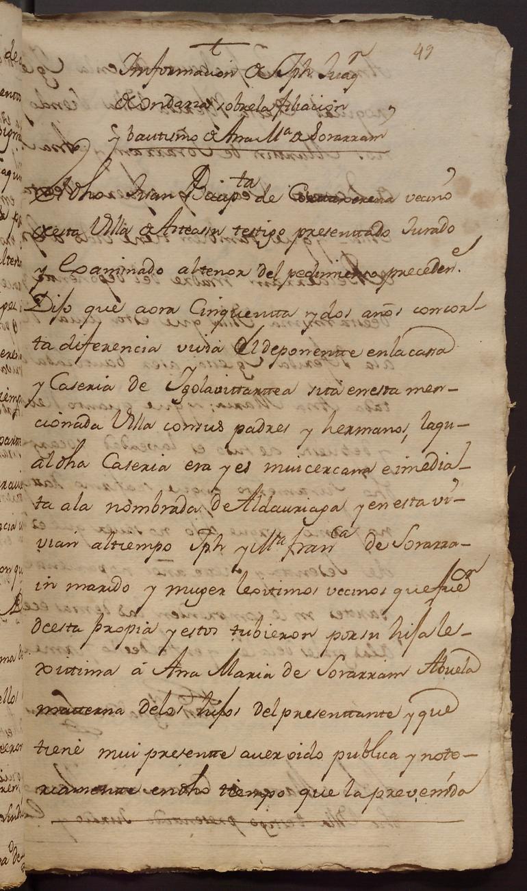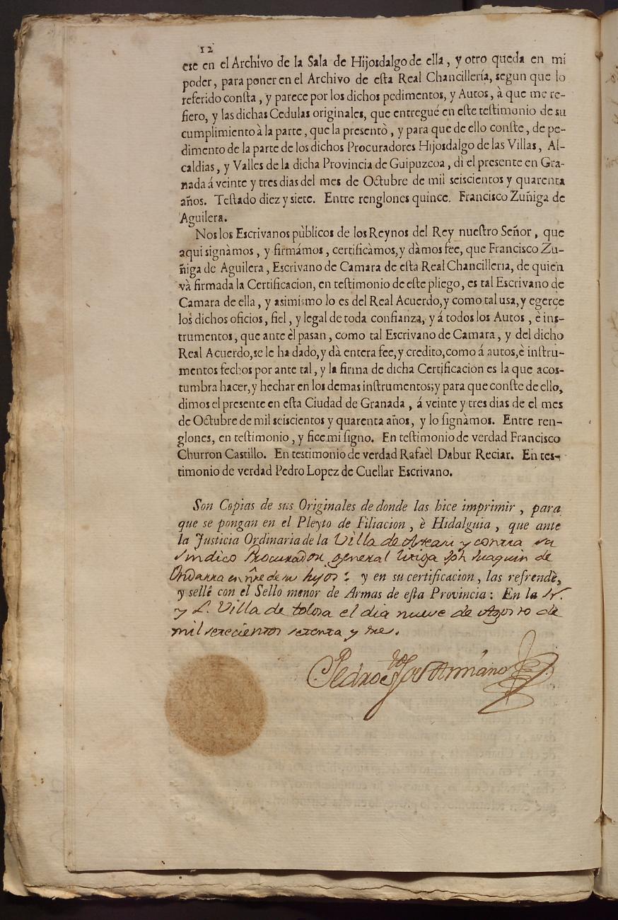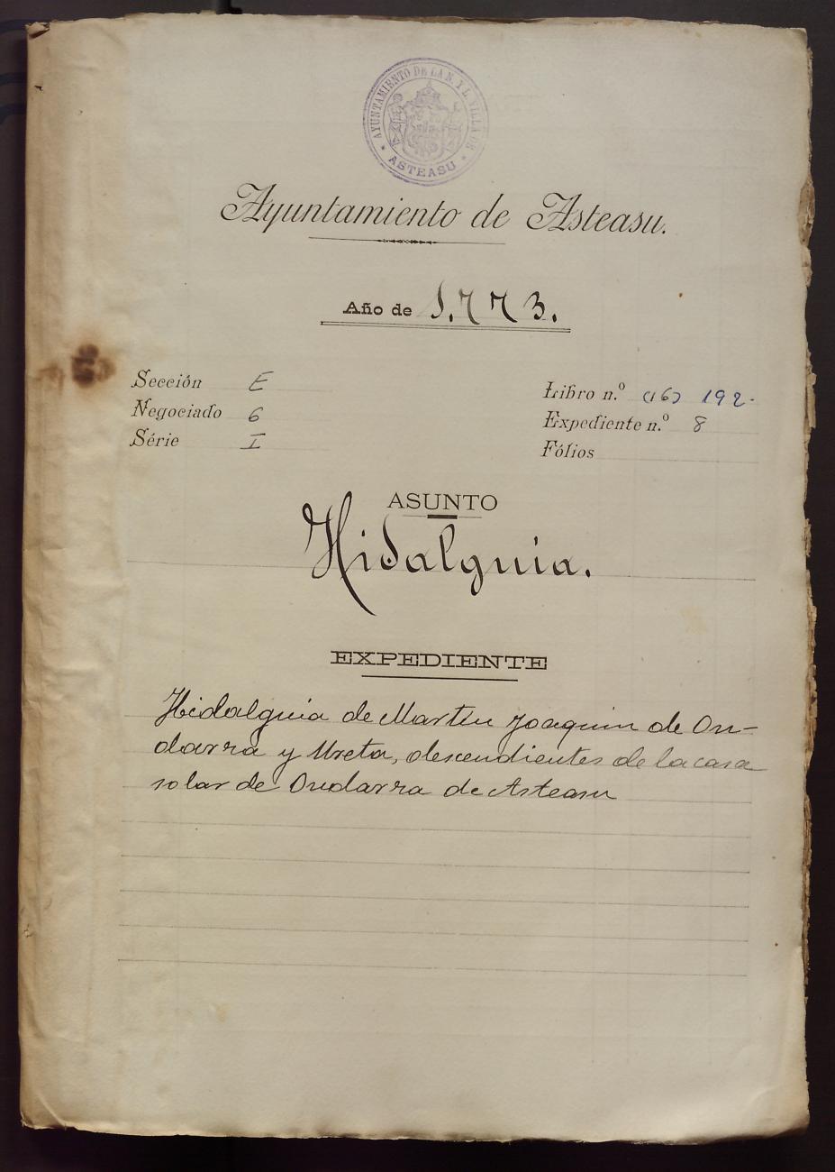 Hidalguias. Hidalguía de Martín Joaquín de Ondarza y Ureta, descendientes de la casa solar de Ondarza de Asteasu.