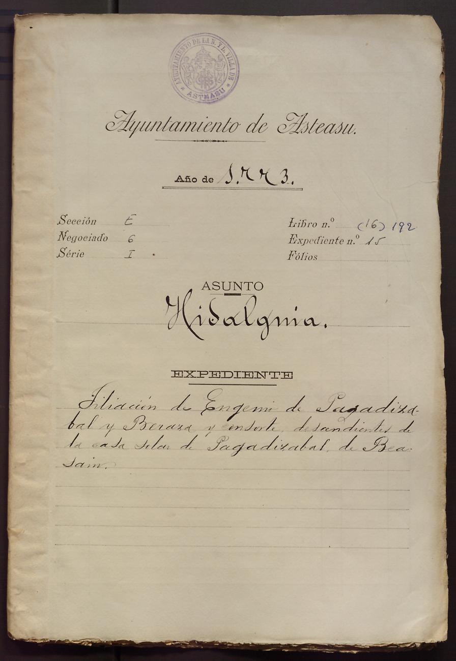 Hidalguias. Hidalguía de Eugenio de Pagadizabal y Beraza y sus hermanos, descendientes de la casa solar de Pagadizabal de Beasain.