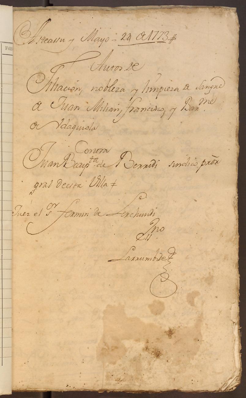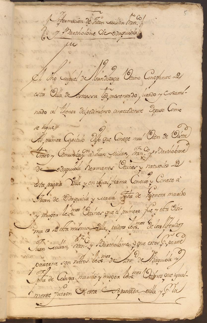 Hidalguias. Hidalguía de Bartolomé de Udaquiola y Goieneta, descendiente de la casa solar de Udaquiola de Asteasu.