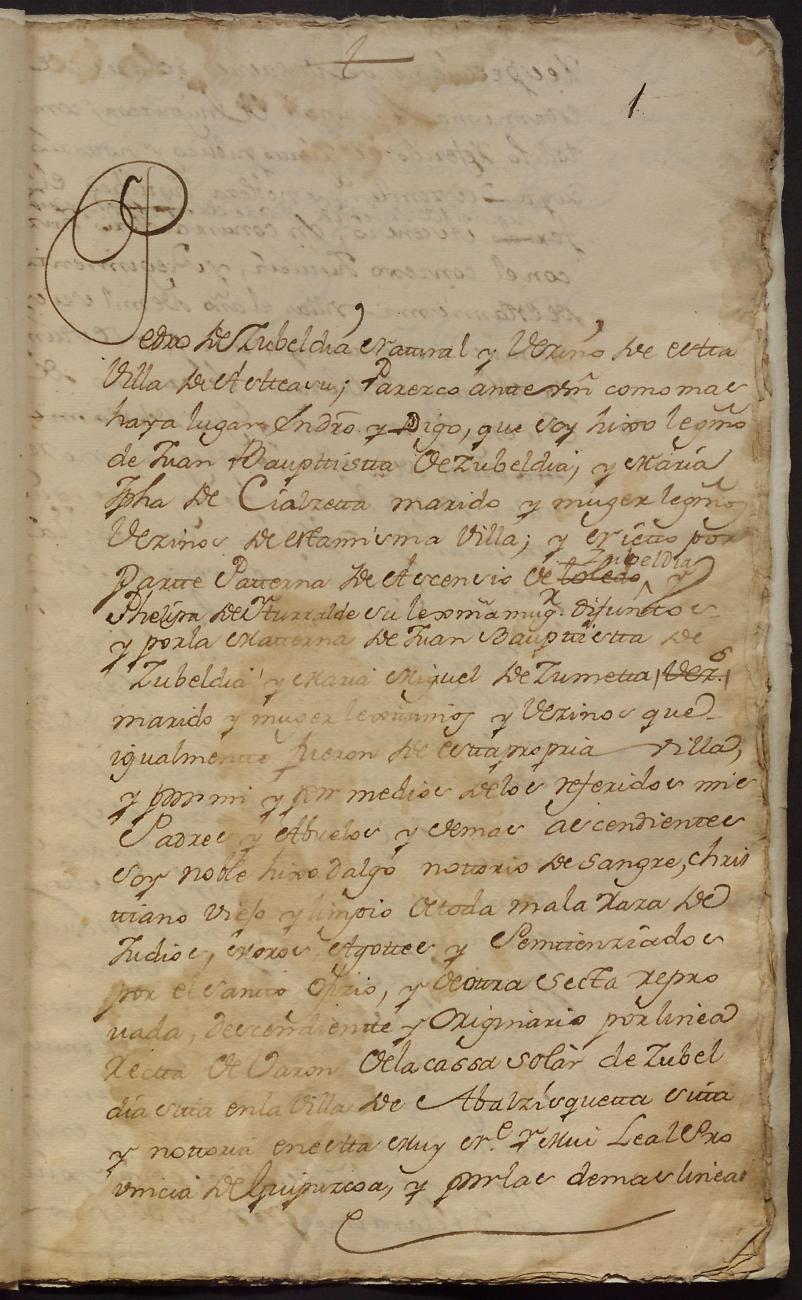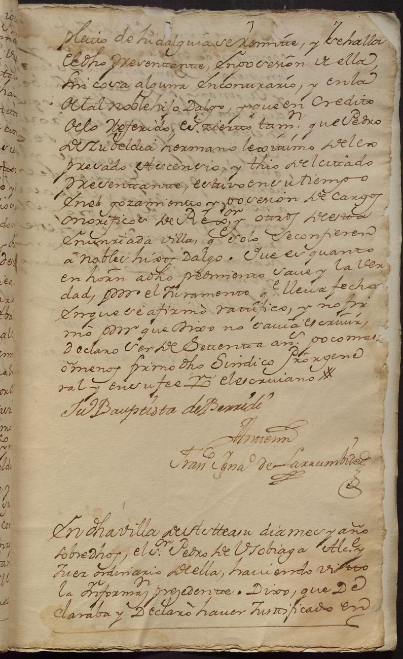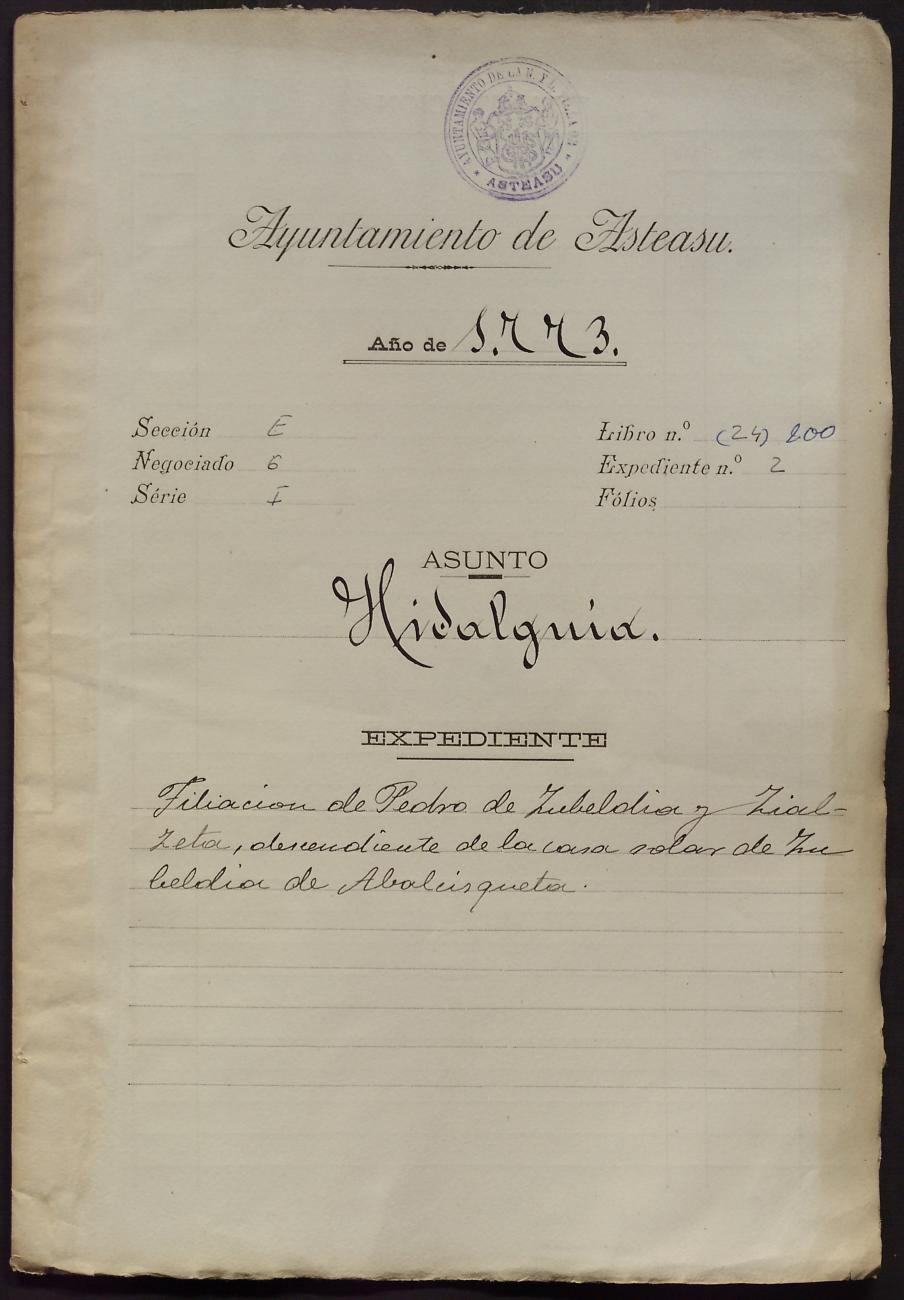 Hidalguias. Hidalguía de Pedro de Zubeldia y Zialzeta, descendiente de la casa solar de Zubeldia de Abaltzisketa.