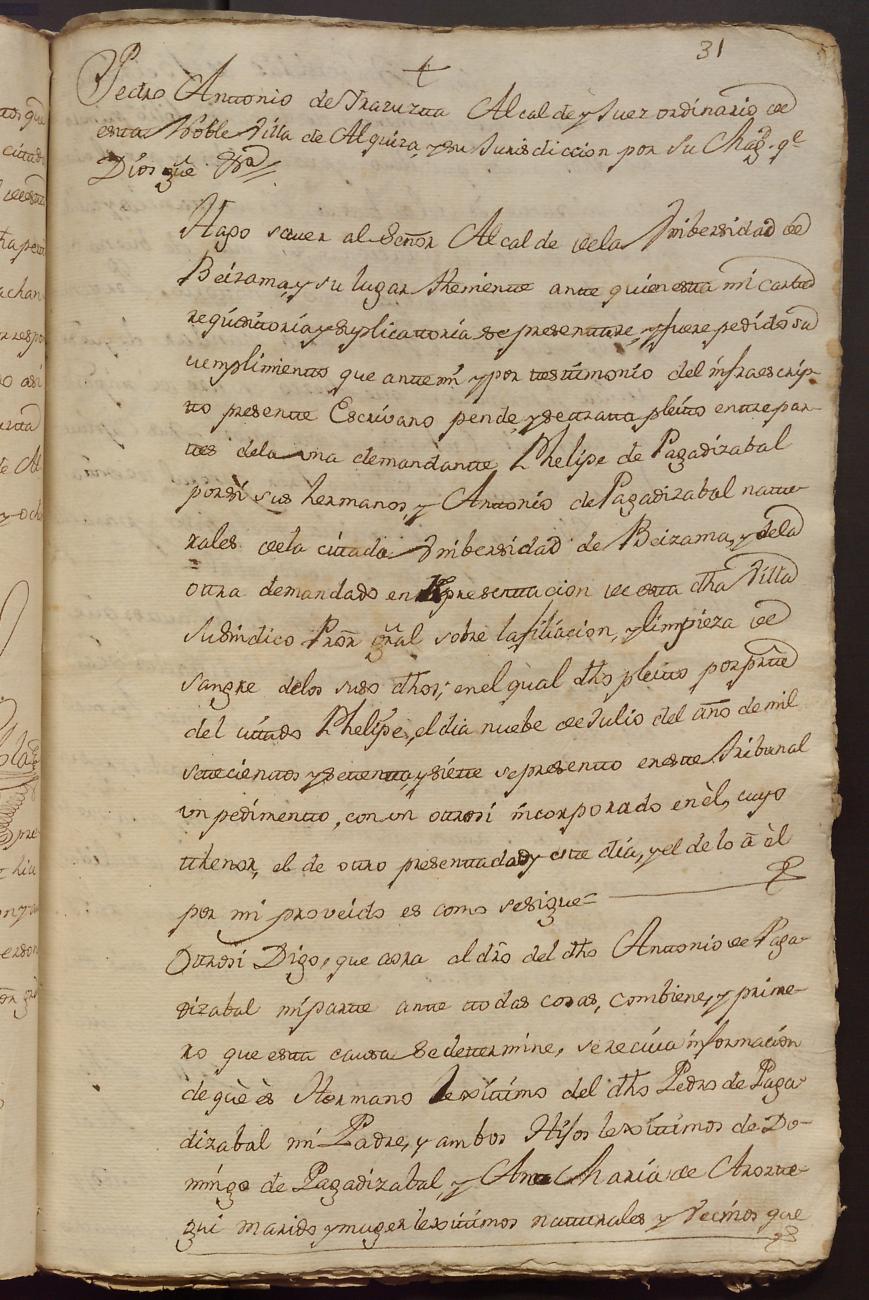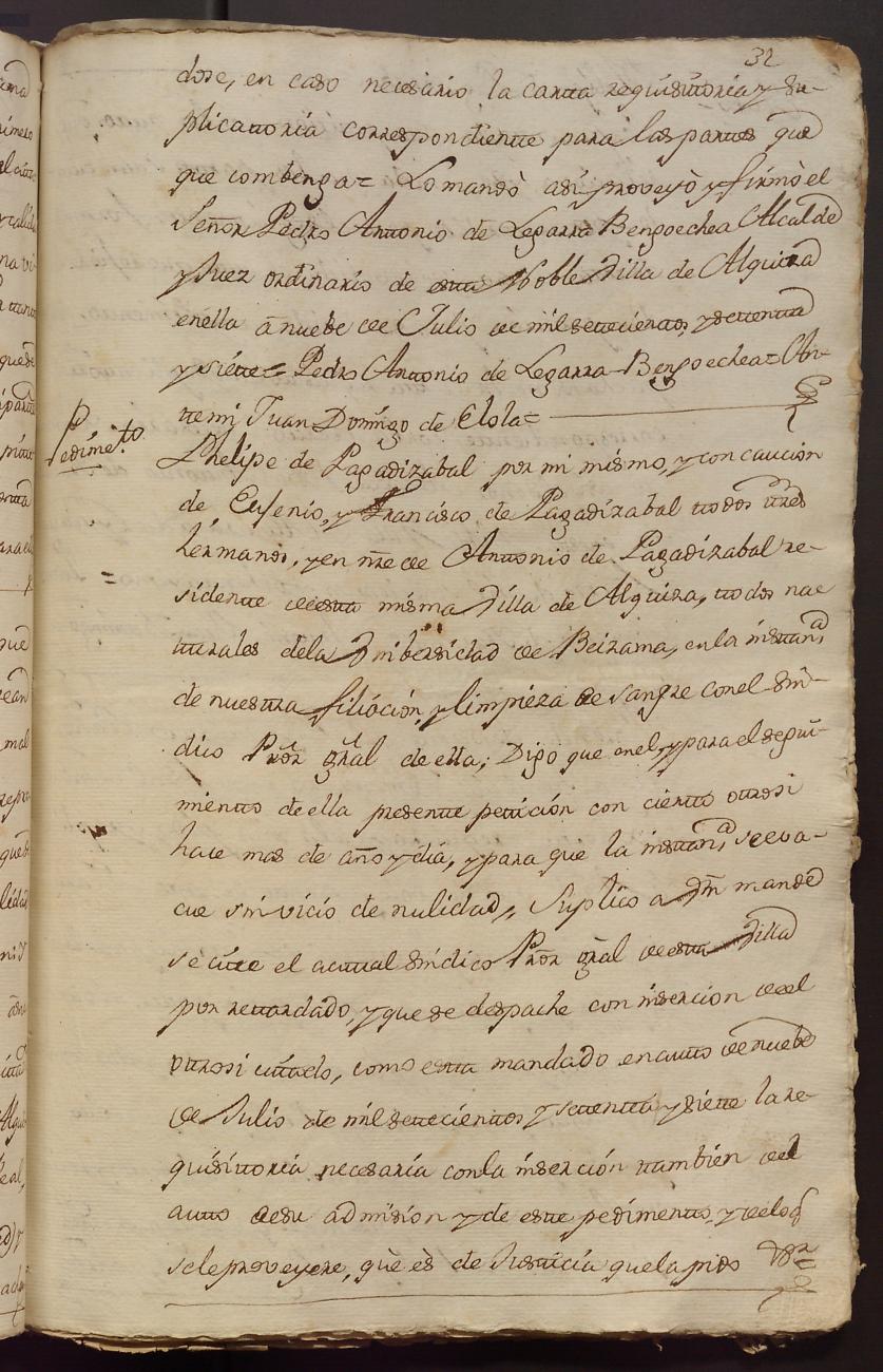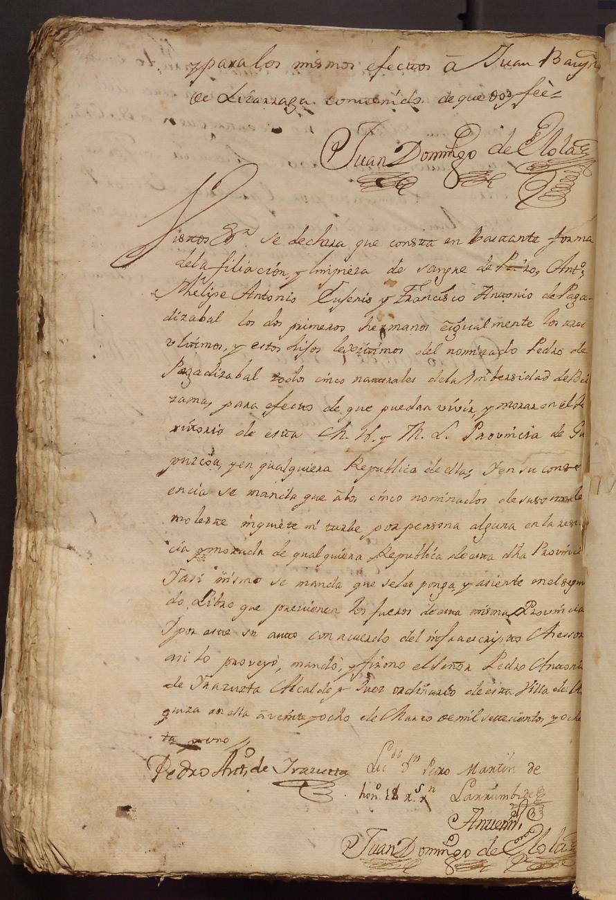 Hidalguias. Hidalguía de Pedro de Pagadizabal y Arostegui, descendiente de la casa solar de Pagadizabal de Beasain.