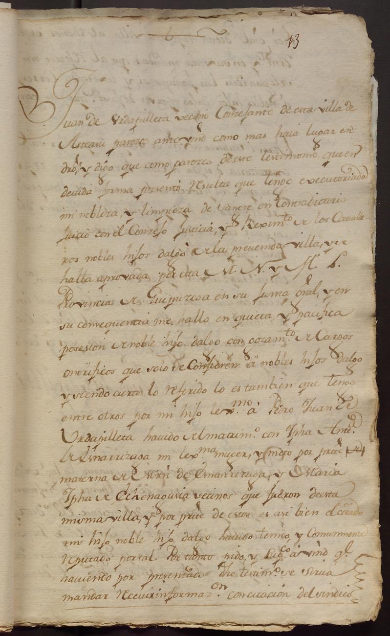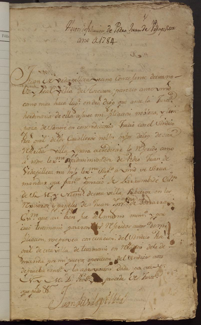 Hidalguias. Hidalguía de Pedro Juan de Urdapilleta y Aizpuru de Asteasu.