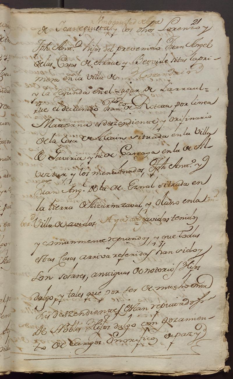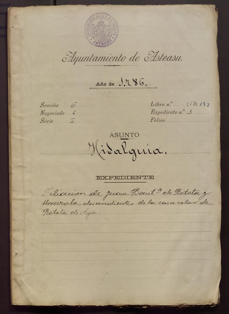 Hidalguias. Hidalguía de Juan Bautista de Roteta y Urruzola, descendientes de la casa solar de Roteta de Aia.