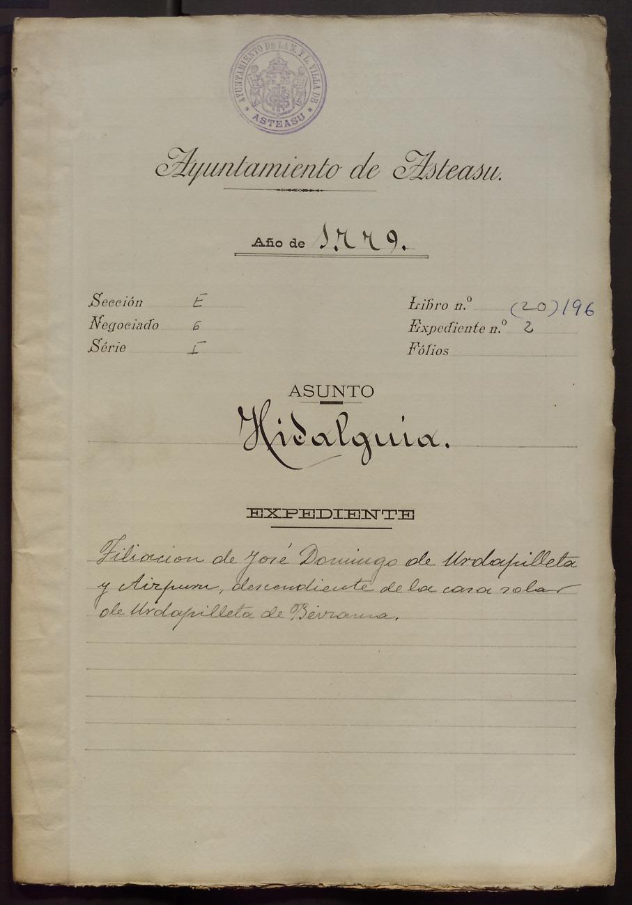 José Domingo Urdapilleta Aizpururen aitonsemetza. Beizamako Urdapilleta oinetxekoa.