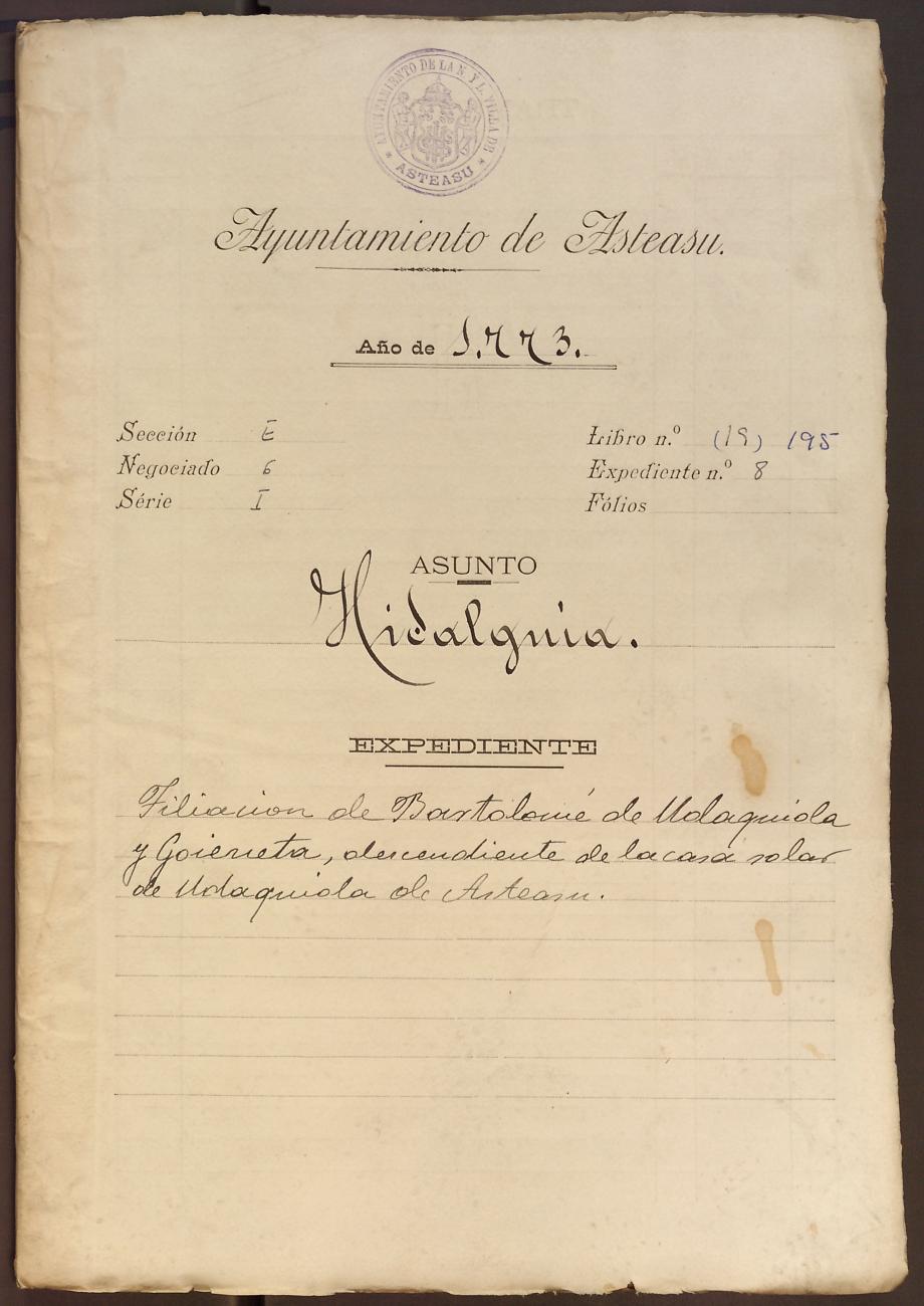 Bartolome Udakiola Goienetaren aitonsemetza. Asteasuko Udakiola oinetxekoa.
