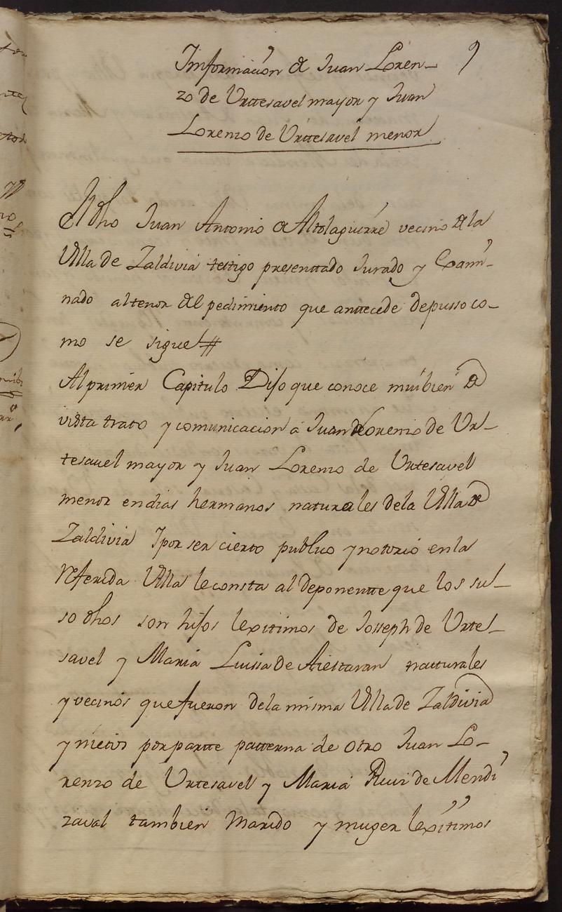 Juan Lorenzo Urtezabal Ayestaranen aitonsemetza. Zaldibiako Urtezabal oinetxekoa.